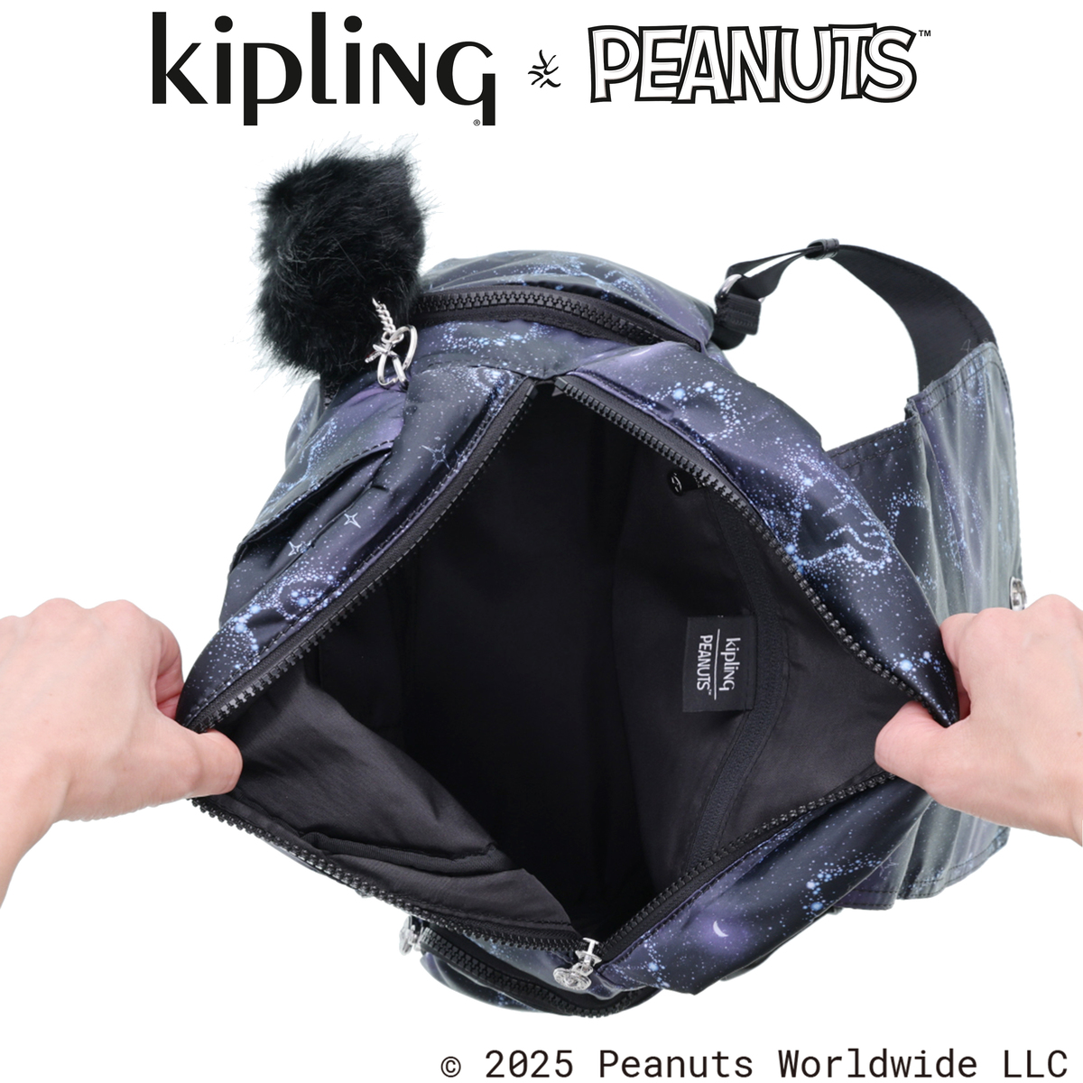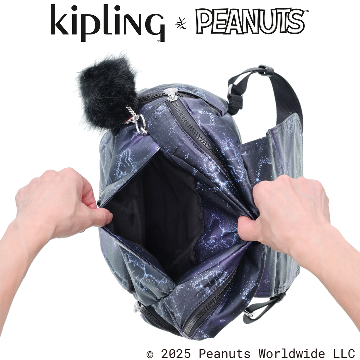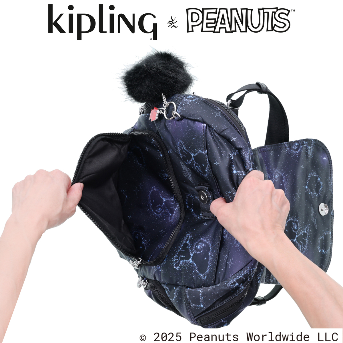 スヌーピーとキプリングがコラボレーションした「KiplingxPEANUTS」コレクションから、バックパックをご紹介。スヌーピー×宇宙をテーマにしたプリントのバッグには、モンキーとスヌーピーのダブルチャーム付き。スヌーピーの赤い犬小屋をイメージした小物も登場し、細部にもこだわった特別なコレクションです