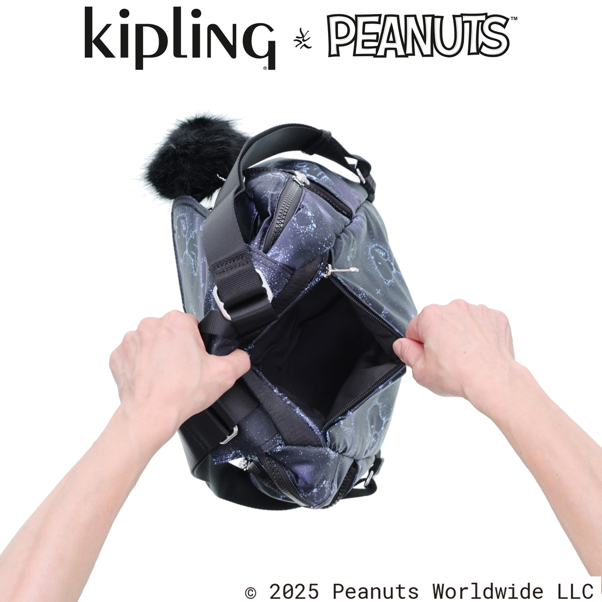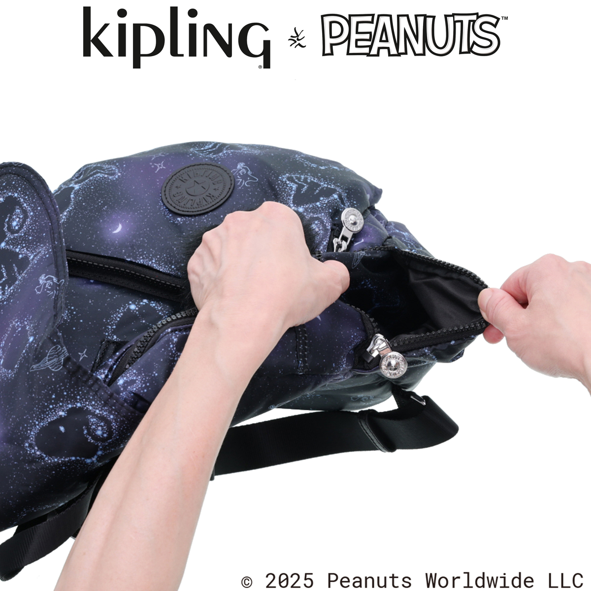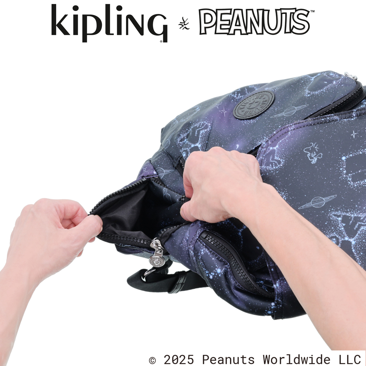 スヌーピーとキプリングがコラボレーションした「KiplingxPEANUTS」コレクションから、バックパックをご紹介。スヌーピー×宇宙をテーマにしたプリントのバッグには、モンキーとスヌーピーのダブルチャーム付き。スヌーピーの赤い犬小屋をイメージした小物も登場し、細部にもこだわった特別なコレクションです