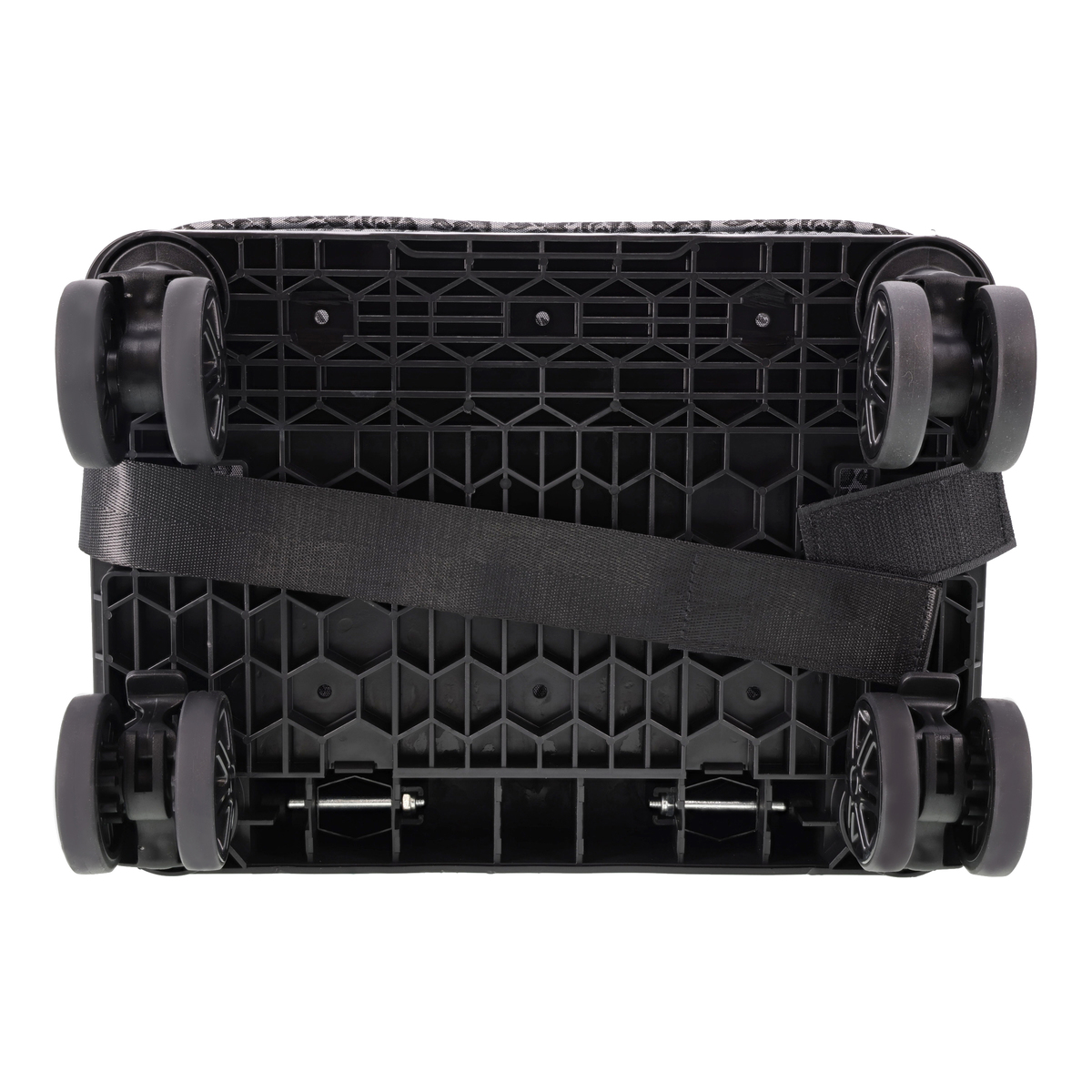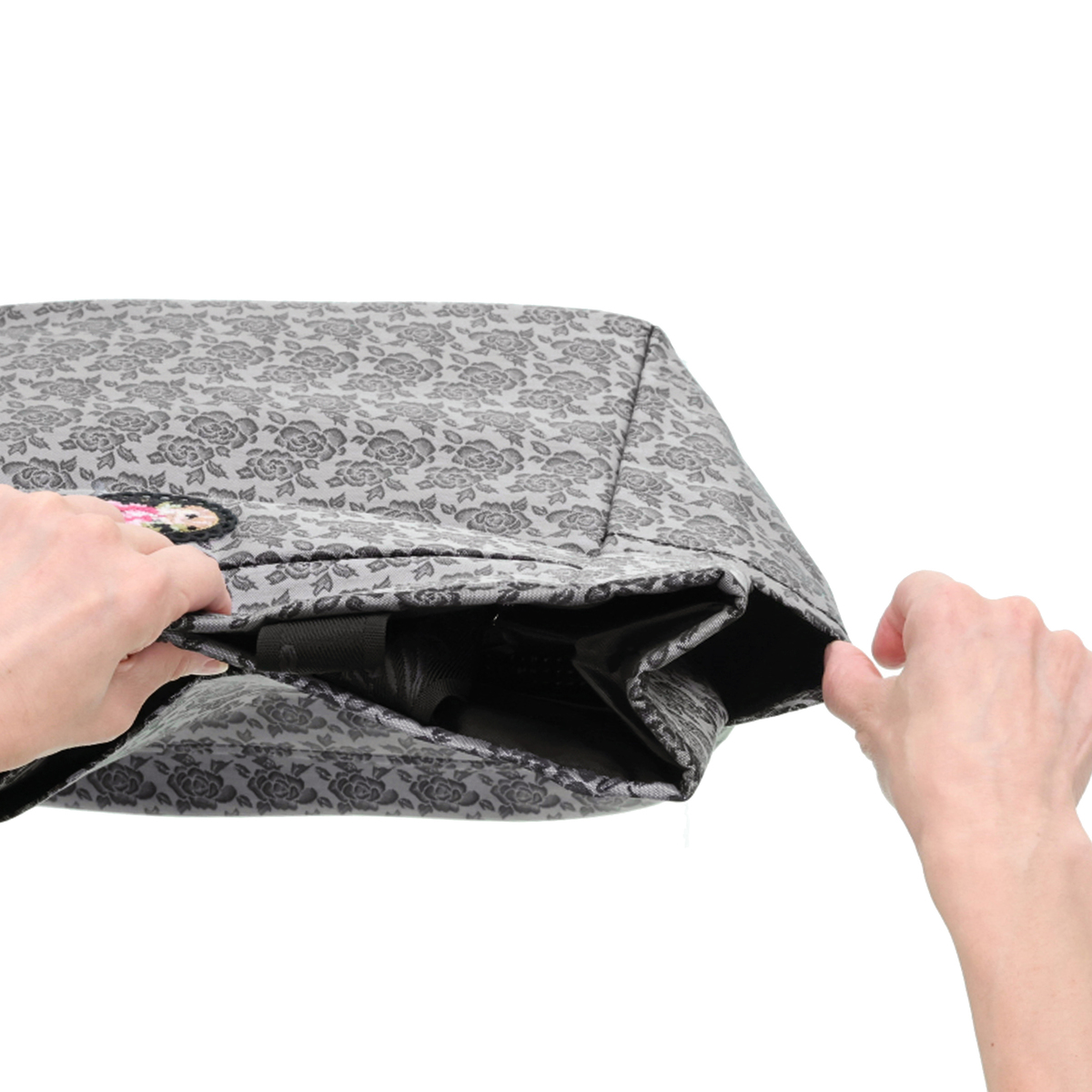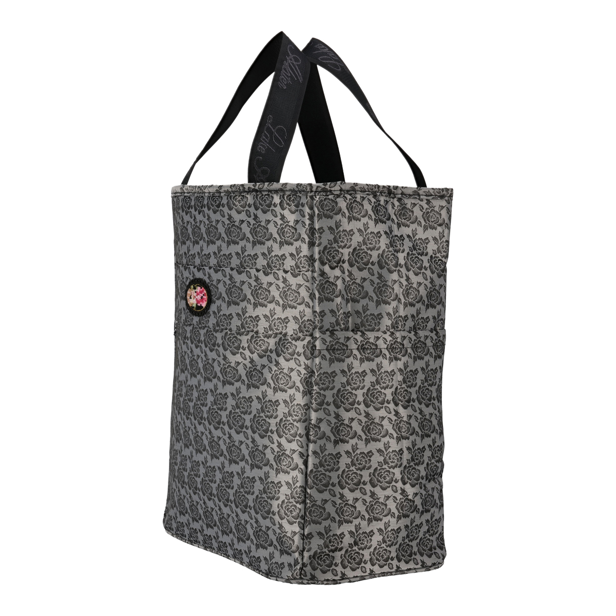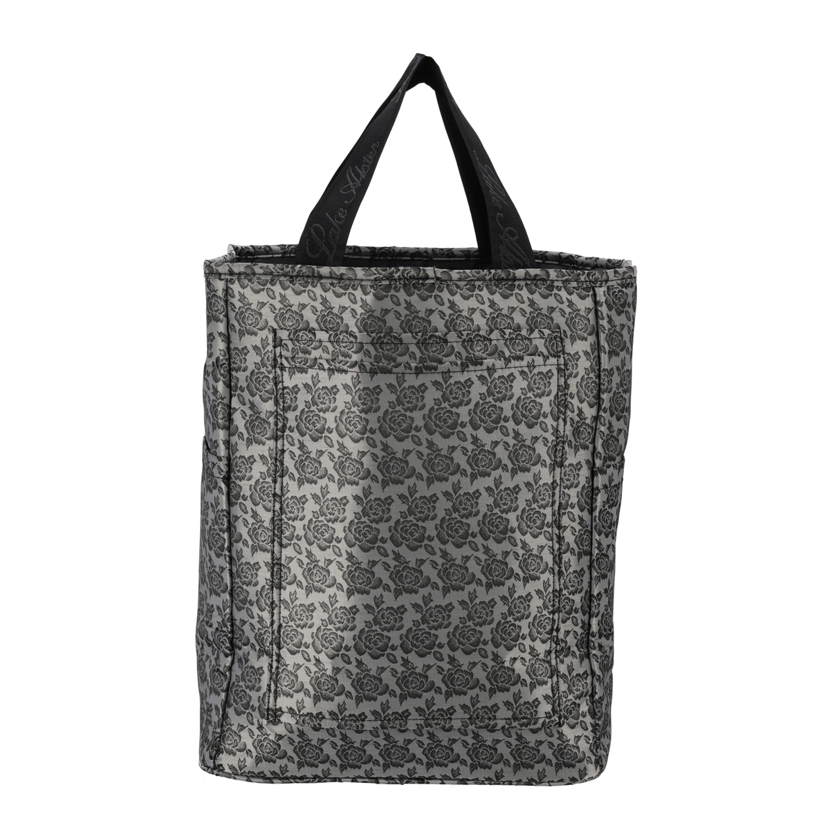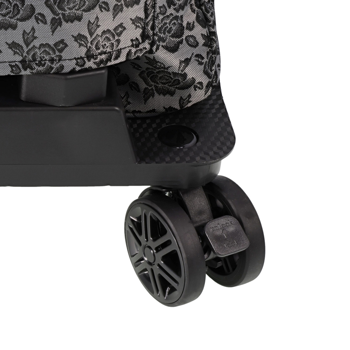 ローズのジャカード織が目を惹く4輪カート。さらにローズ柄のシェニール織りワッペンもあしらいポイントに。四輪可動式タイヤで安定感があり、スムーズに移動できます