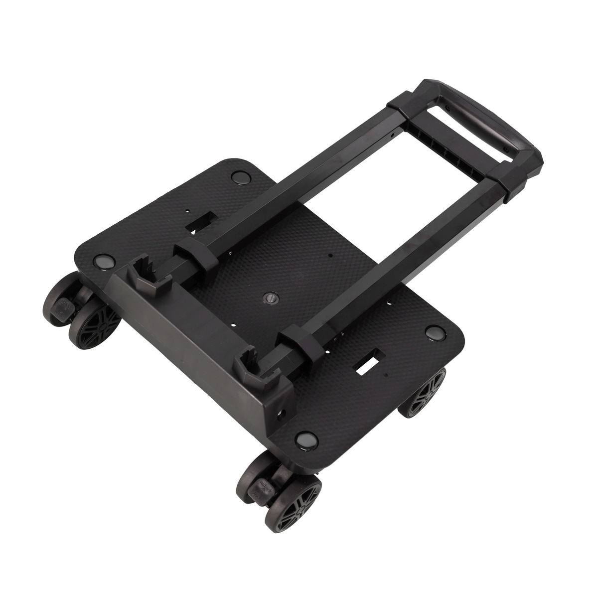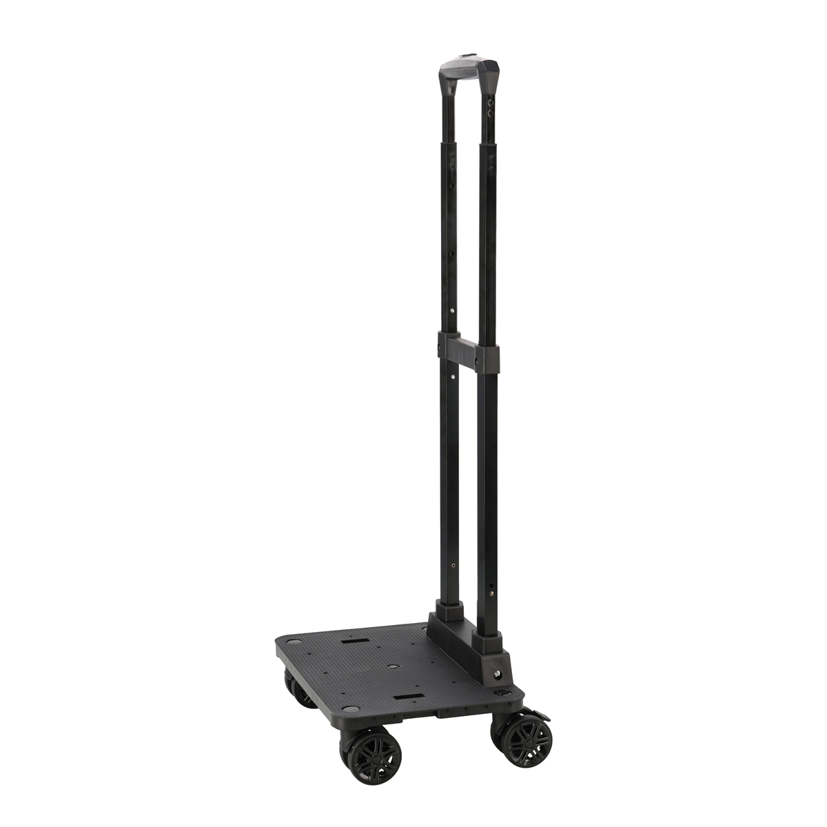 ハンドルは4段階で高さ調整可能。フレームは折り畳み可能でコンパクトに収納できます。車輪はストッパー付きで固定できます