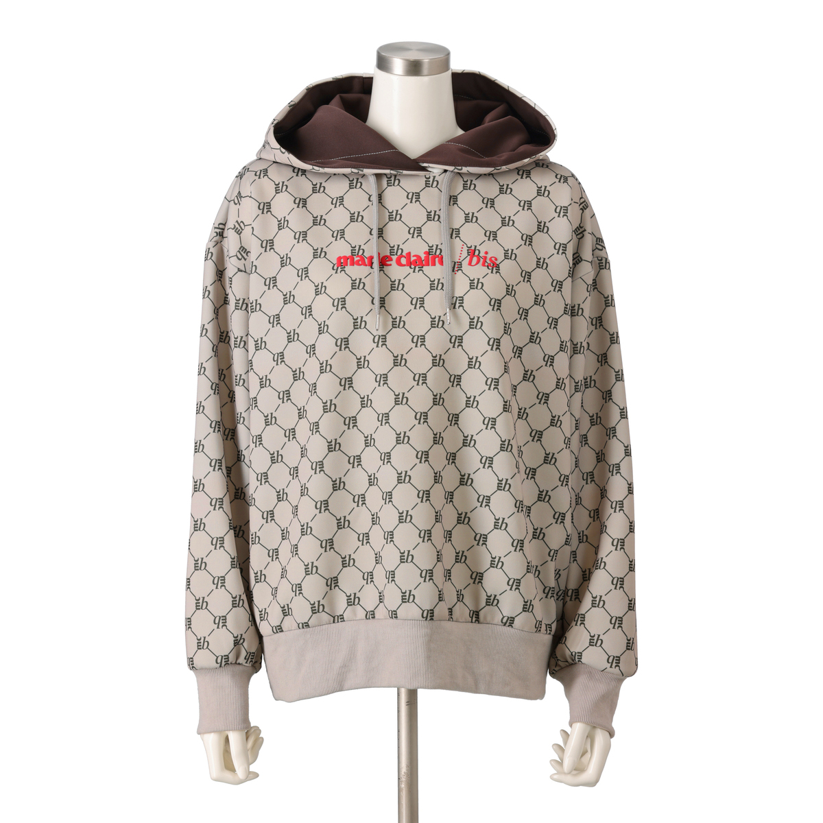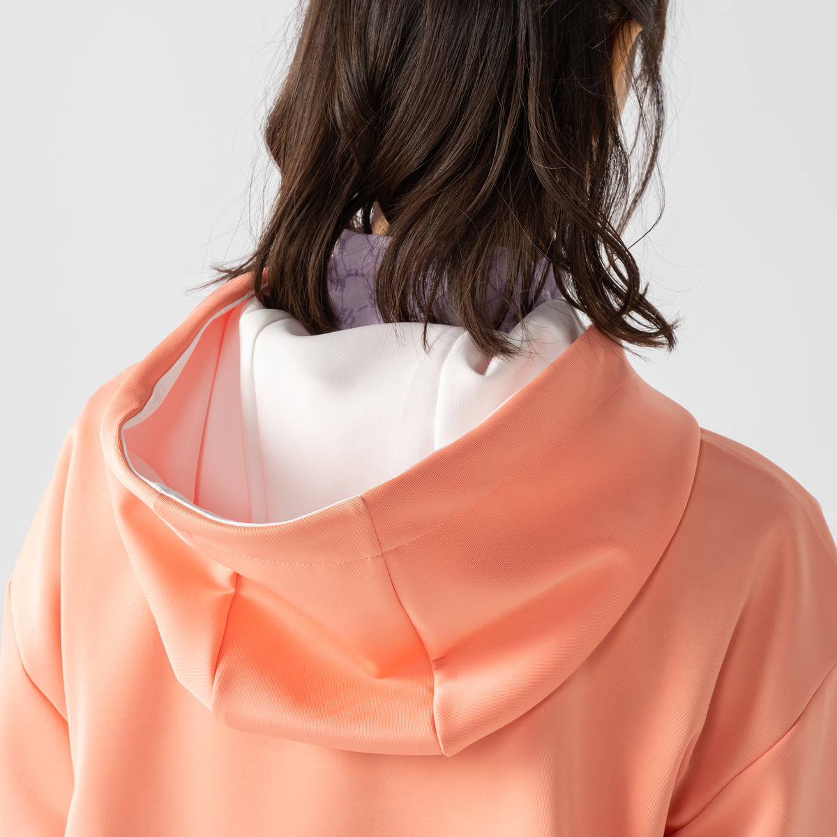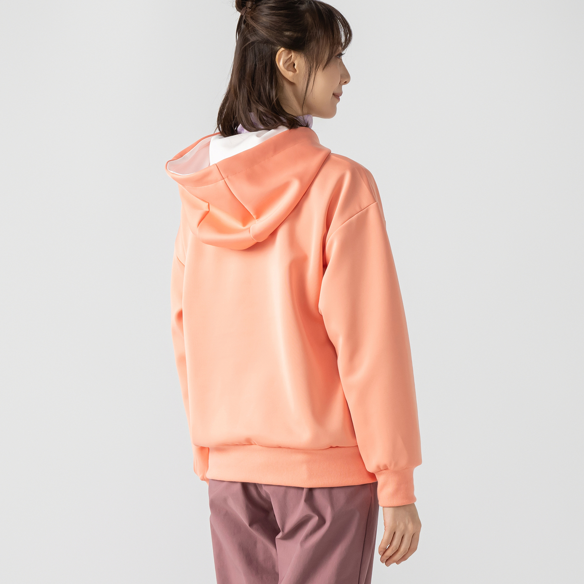marie claire/bisのフーディプルオーバー。フード裏の配色が顔周りを明るく見せてくれます