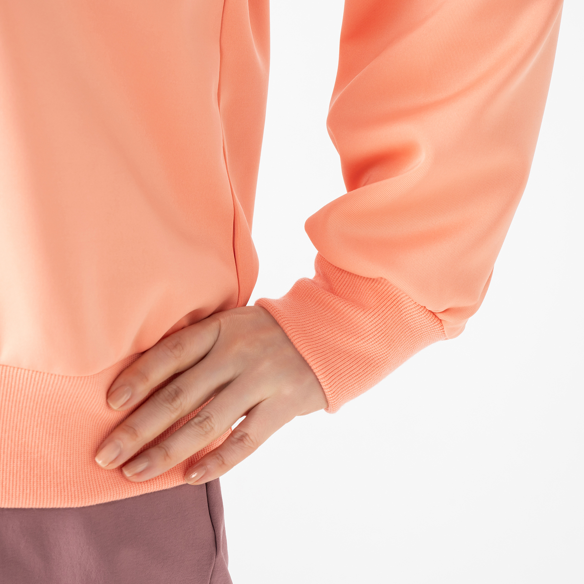 袖口と裾は風の侵入を防ぐリブ仕様。胸元にはぷっくりとした発泡プリントのロゴを施しアクセントになっています