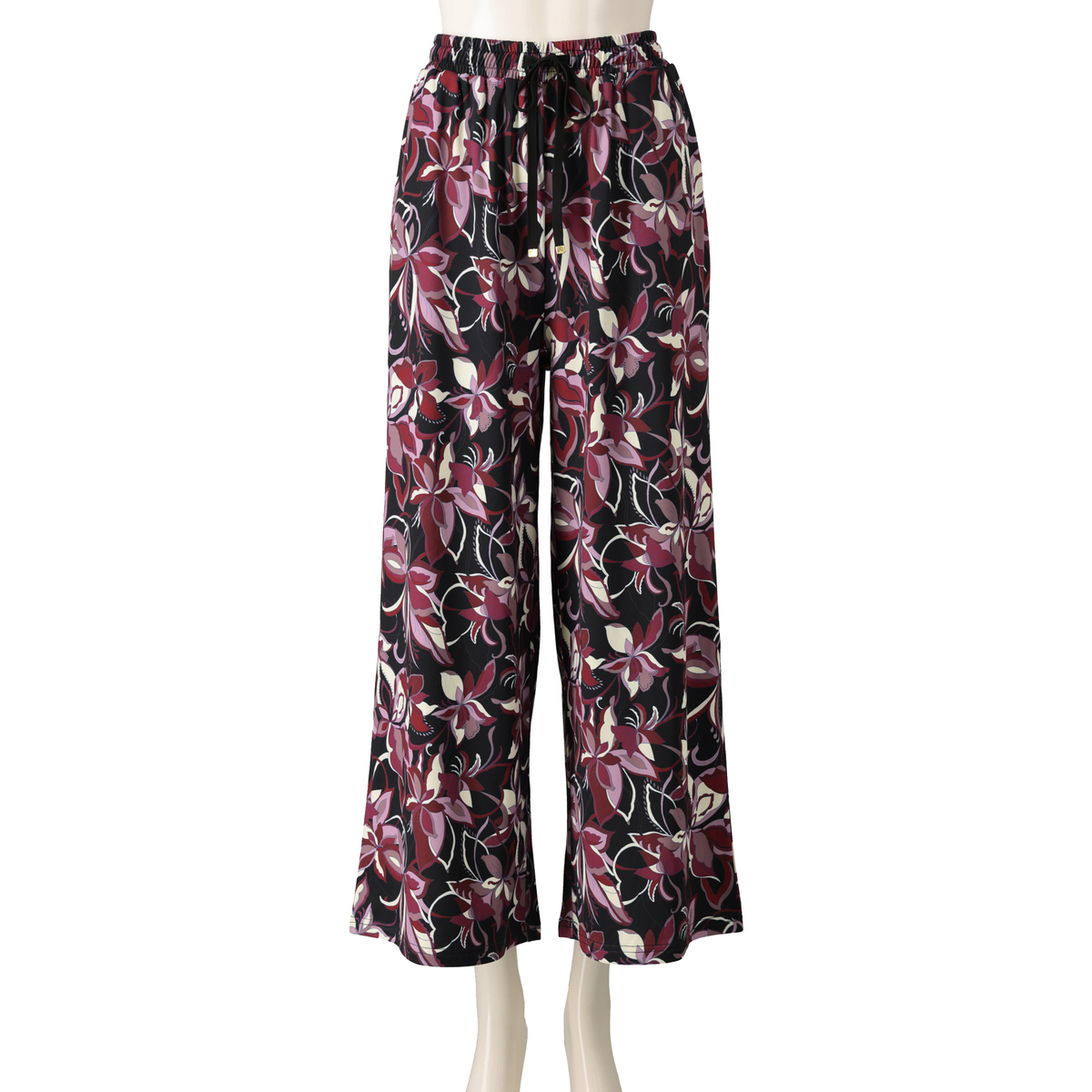 <トップス> [商品寸法(ヌード)cm] サイズ バスト 着丈 M-L : 104(79〜94) 68 LL-3L : 112(93〜108) 71 サイズ 肩幅 袖丈 M-L : 43 46 LL-3L : 47 48 <パンツ> [商品寸法(ヌード)cm] サイズ ウエスト ヒップ 股下 M-L : 68(64〜77) 106(87〜100) 60 LL-3L : 80(77〜93) 118(97〜110) 63 サイズ 前股ぐり わたり幅 M-L : 31 32.5 LL-3L : 33 32.5 [ウエストゴム] 全体に有 [素材] ポリエステル 95% ポリウレタン 5% [お手入れ] 洗濯機洗い可 [注意事項] ※商品寸法の誤差は多少発生します。ご了承下さい ※洗濯の際は、ネットをご使用ください ※単独で洗濯してください ※タンブラー乾燥はお避けください ※濃色商品は、染料の性質上色落ちすることがありますので、白物及び淡い色物との重ね着に注意し、洗濯の際も分けて洗濯してください。また、長時間濡れたまま他の物と重ねておくと色移りすることがありますので、ご注意ください ※摩擦や濡れた状態での摩擦で色落ちしたり、他の衣料や持ち物等に色移りすることがありますのでご注意ください ※蛍光増白剤入りの洗剤で洗たくすると、白っぽくなったり変色することがありますので、無蛍光洗剤をご使用ください ※プリントは強く力を加えたり、洗濯すると脱落することがあります ※素材の特性上、洗たくすると多少縮むことがありますので、ご注意ください。洗たく後は、形を整えて干してください ※素材の特性上、長時間の摩擦や揉み作用で毛玉が出やすいのでご注意ください。目立つ毛玉はハサミや毛玉取り器で取り除いてください 【中国製】