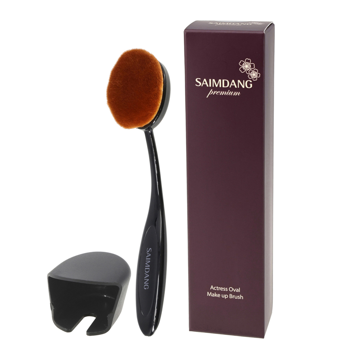 角(面)がなく微細毛で密度が高いオーバルブラシ付き。ファンデーションを肌の凹凸などに密着させ、表面を平らに整えることでナチュラルなツヤを与えてくれます