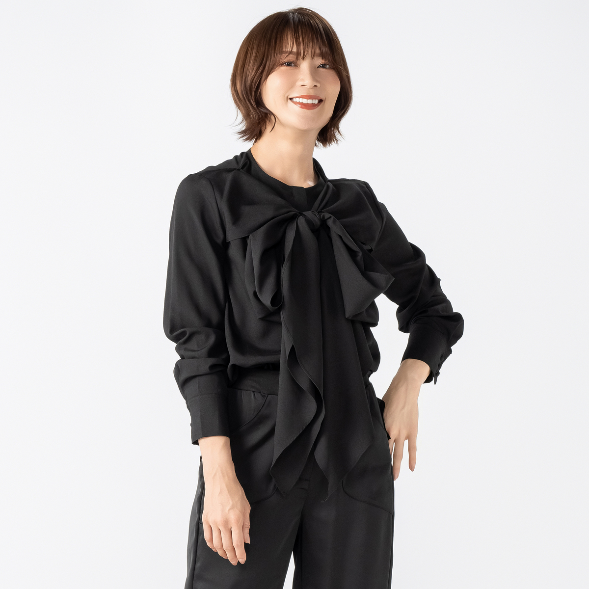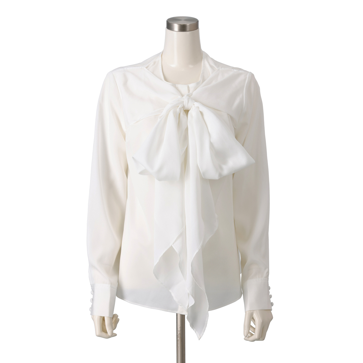 エレガントなタイ付きシフォンブラウス。タイをリボンのように結ぶことで、装いの華やかなポイントになってくれます