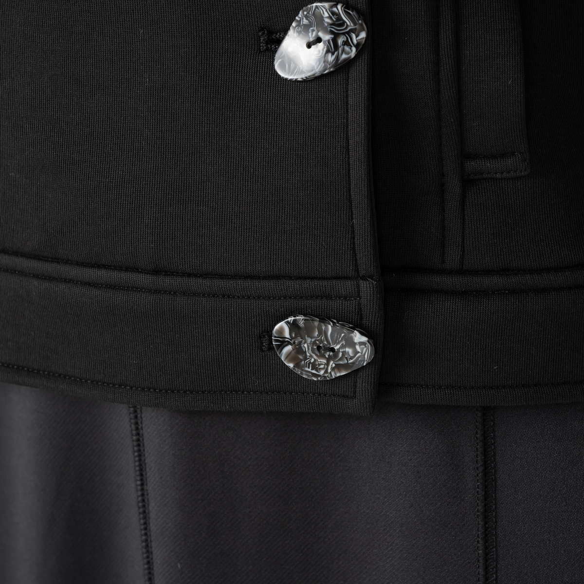 ライダース風にしてはちょっとブカっとするように思ってワンサイズ下のSサイズに交換をしたかったのですが… Sサイズは完売なので仕方なくセーターの上からきれば少しはブカつきが抑えられて着れそうなんで返品はもう少し考える事にしました。 あと袖口がシンプル過ぎ後ろの切り替えにこだわるのでしたらもう少し袖口にもこだわって欲しかったですね。 ボタンステキです。 ボタンはとても気に入って手放すのがおしい…とおもってしまいます。 そんな訳でもう少し返品は考える次第です。