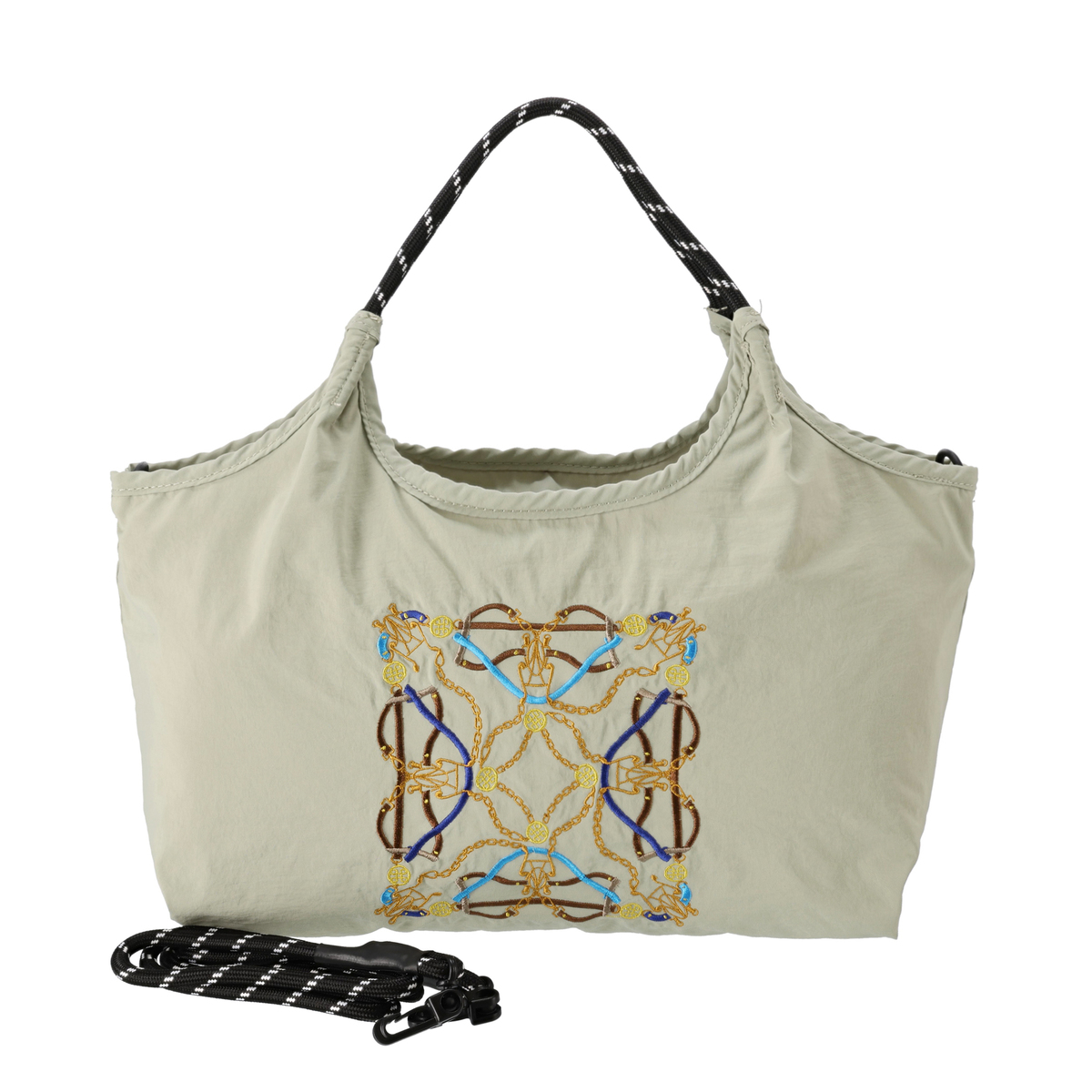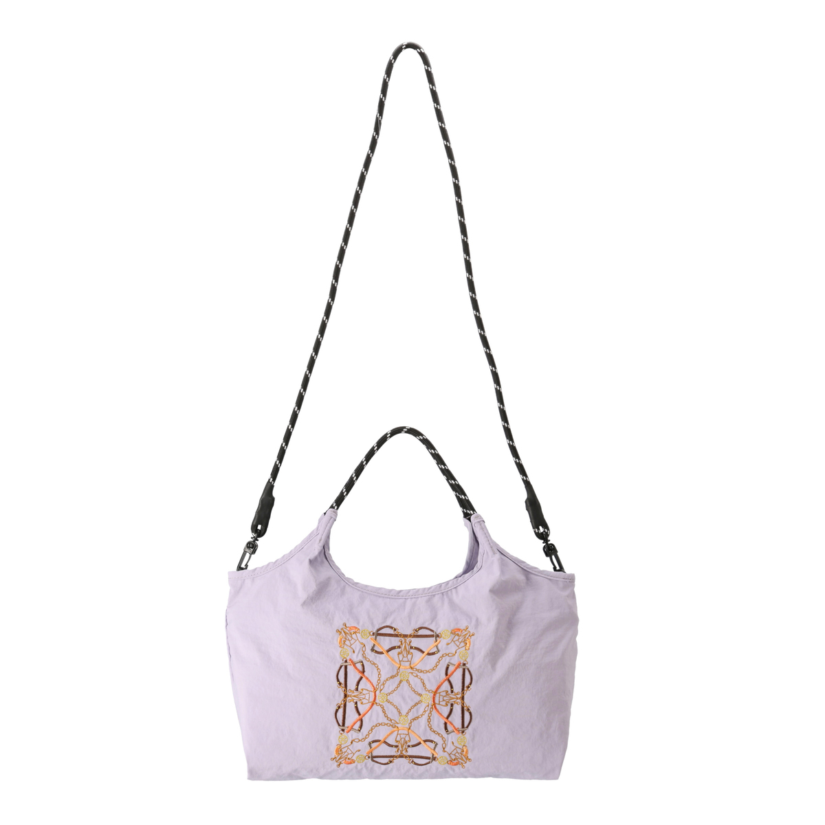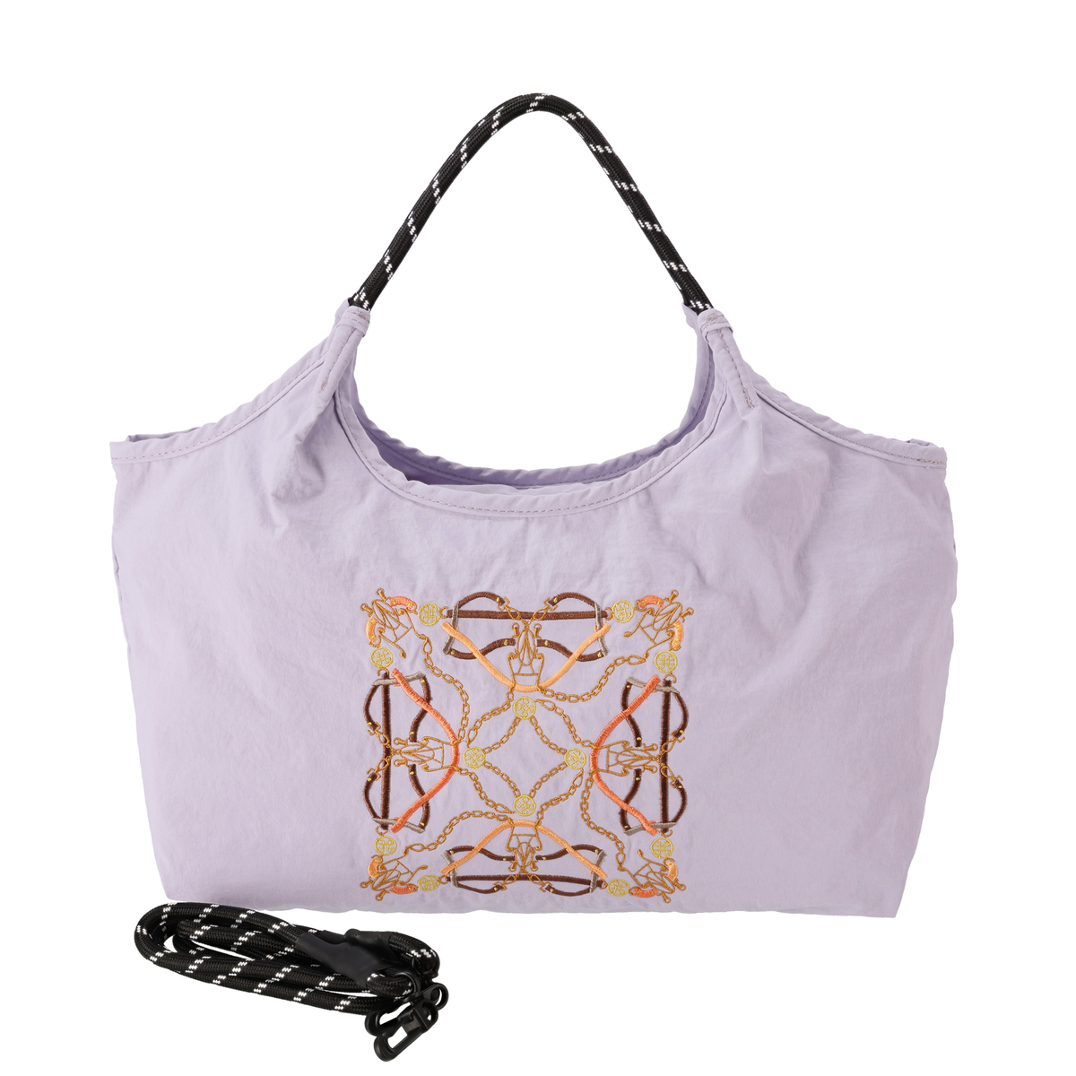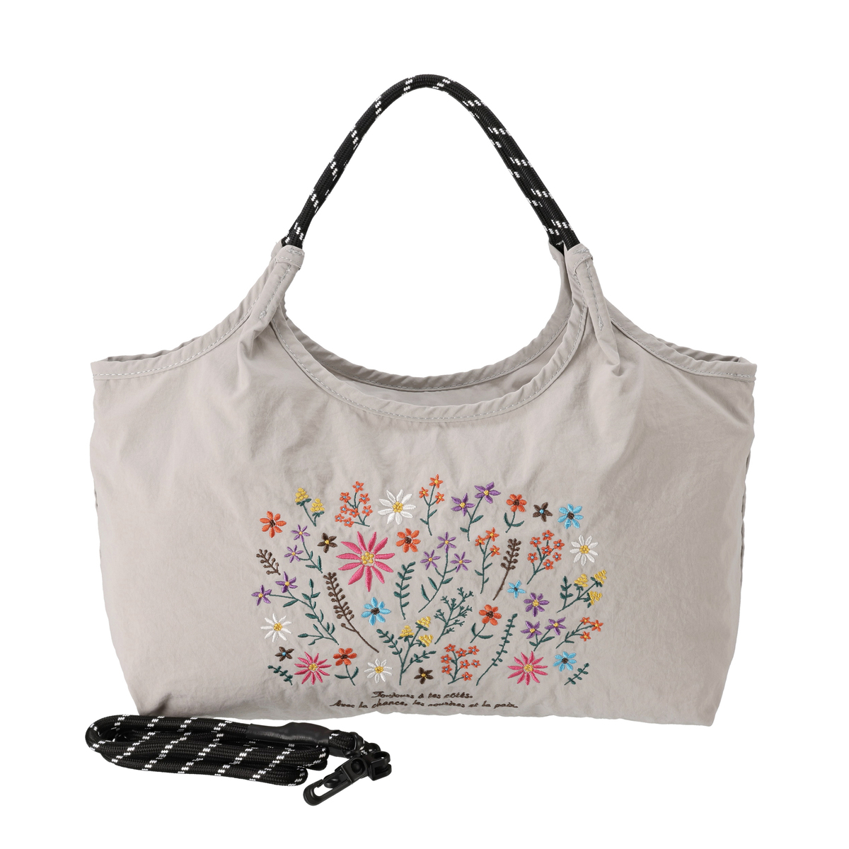 [サイズ(約)] 縦23×横38(上)32(下)×マチ2cm ハンドル立ち上がり:13cm ショルダー立ち上がり:55cm [重量(約)]※付属品含む 195g [素材] 本体:ナイロン100% 刺しゅう糸:ポリエステル100% ※裏地無 [仕様] 付属(取り外し可):ショルダーベルト×1 開閉:ファスナー式 底ビョウ:無 [ポケット] 内側:オープンポケット×1 外側:無 【中国製】