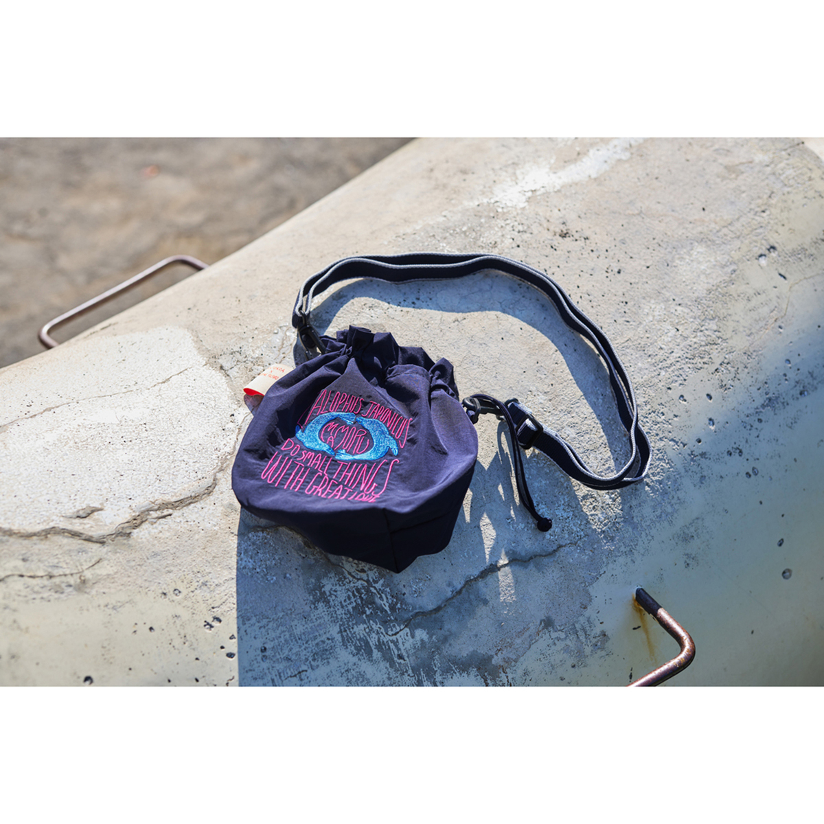 取り外し可能なショルダーベルト付き。ショルダーポーチとしても巾着ポーチとしても使え、シーンに合わせて楽しめます