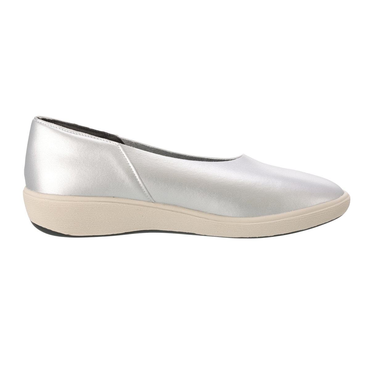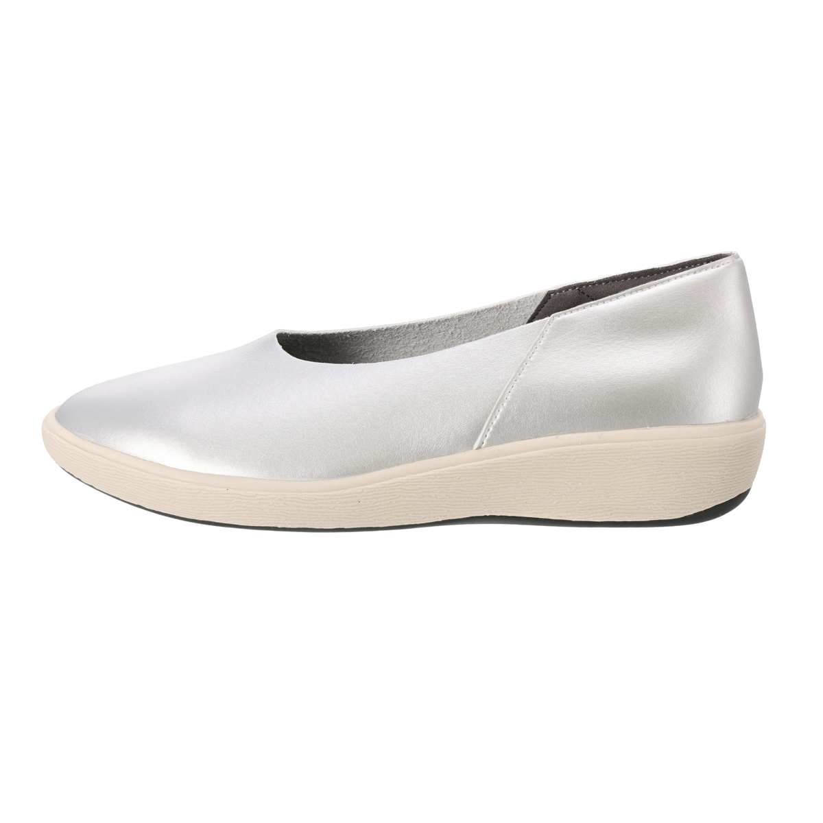 クラレが開発した人工皮革クラリーノの中でも、伸縮性に優れた材料を使用。その特長を活かすため内装材を最小限にし、縫い目を極限まで減らして、素材の柔らかさを感じられるようにおつくりしたバレエスニーカーです