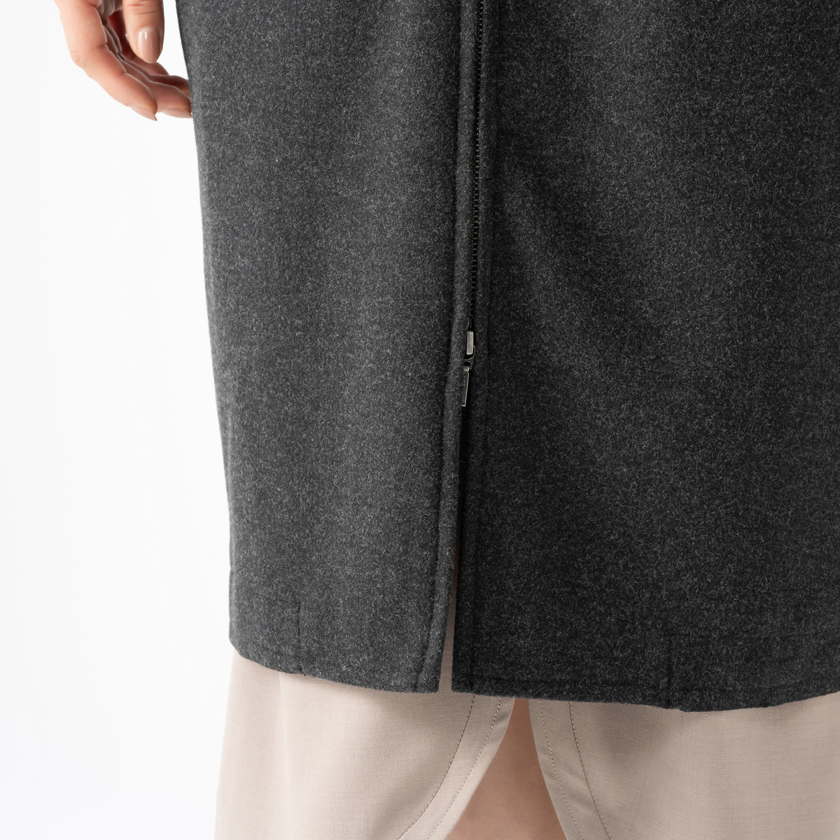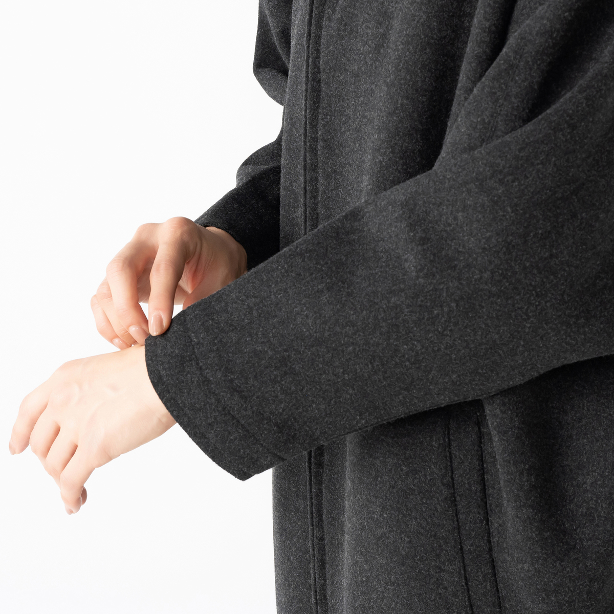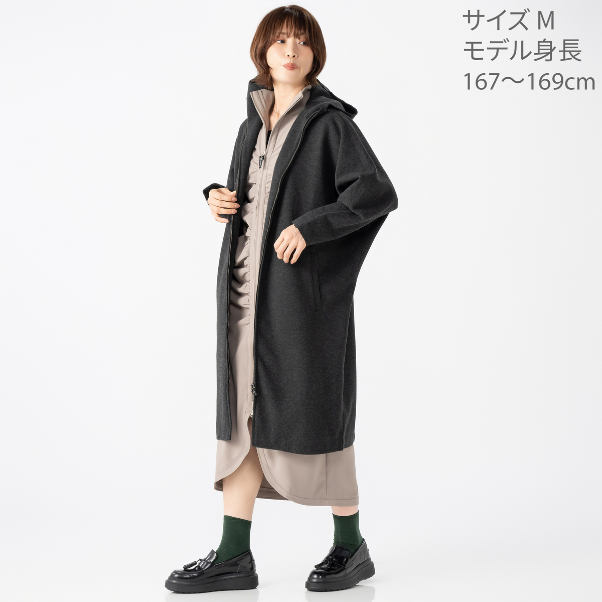 [商品寸法(ヌード)cm] サイズ バスト 着丈 S: 139(74〜82) 100.5 M: 144(81〜89) 102.5 L: 150(88〜96) 103.5 LL: 156(95〜103) 104.5 3L: 162(102〜110) 105.5 サイズ 裄丈 S: 73.5 M: 75 L: 76.5 LL: 78 3L: 79.5 [素材] ポリエステル91% レーヨン9% [お手入れ] ドライクリーニング [注意事項] ※商品寸法の誤差は多少発生します。ご了承下さい ※素材の特性上、着用や洗濯・クリーニング時の摩擦により毛羽立ち、毛玉が発生します。その際はお早めに毛玉取り器等で手入れをして下さい ※濃色製品は着用中の摩擦により色移りすることがあります。また、雨や汗等で濡れた状態で着用すると色移りすることがあります。その際はお早めに洗濯をして下さい ※デザイン上、裁ち目処理をしていない部分があり、着用や洗濯・クリーニングにより多少ほつれが生じることがありますのでご了承下さい ※デザイン上、生地端を裁ち切り始末しています。ほつれてきた場合は引っ張らずにはさみなどで切って下さい ※ご家庭での洗濯はお避けください ※ドライクリーニングの場合は、クリーニングネットを使用し、短時間で処理してください。タンブラー乾燥はお避けください ※素材の特性上、所々に斑点・糸節と見られる部分がありますが、生地の特徴としてご理解ください 【中国製】