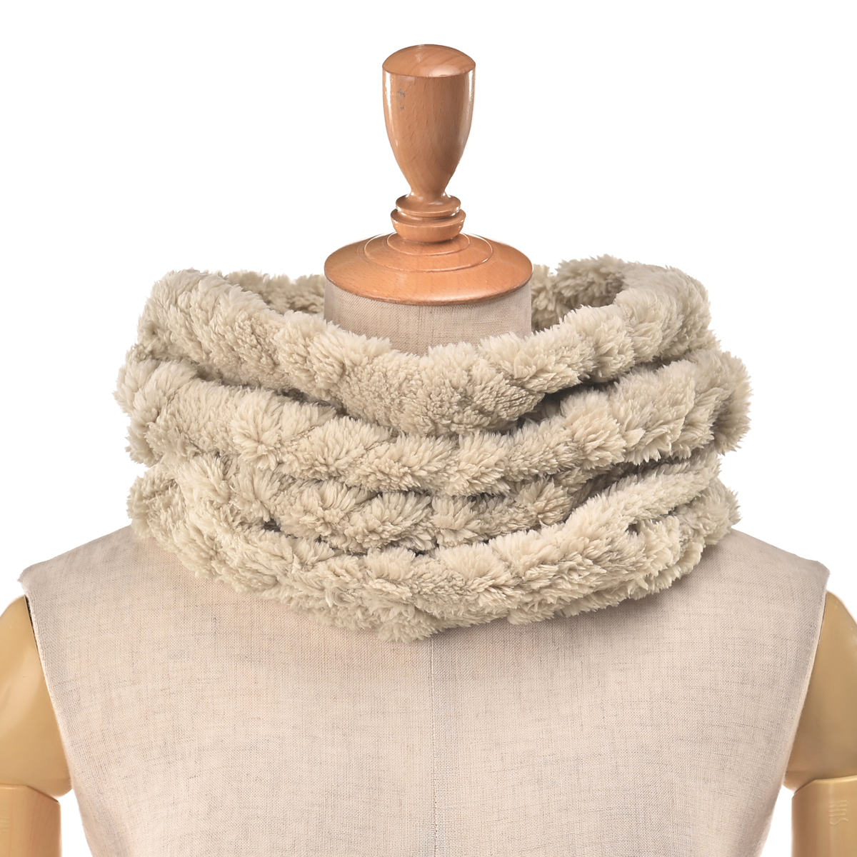 タートルネックセーターの首まわりのように、頭からかぶり首を覆うように使用。立体的で高級感のあるジャガード織りを活かして、コーディネートのワンポイントとしても活躍します。また、洗濯機で丸洗いも可能です(洗濯ネットをご使用ください)