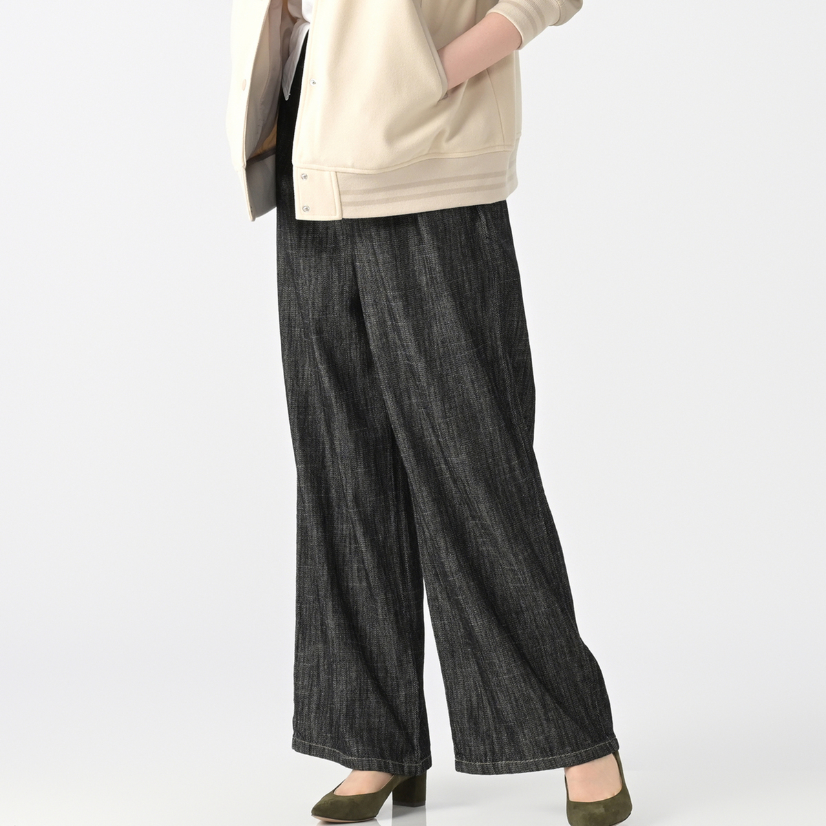 No. 747728 Provador やわらかソフト甘織デニムワイドパンツ