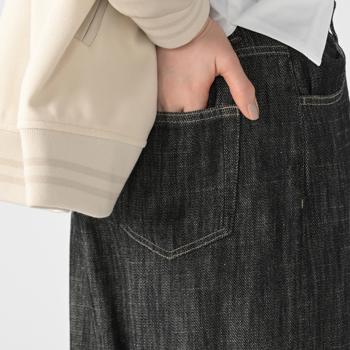 ソフトで軽い仕上がりのデニムパンツです。糸の撚りを甘く織る事で生地に膨らみがある、柔らかでごわつき感の少ないデニムを使用。洗いをかけたネイビー、ブラック、ケミカル、グレーは製品ブリーチ加工の絶妙な色合いがこなれ感を表現しています