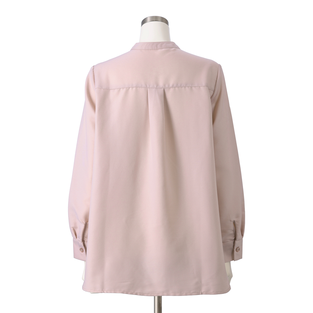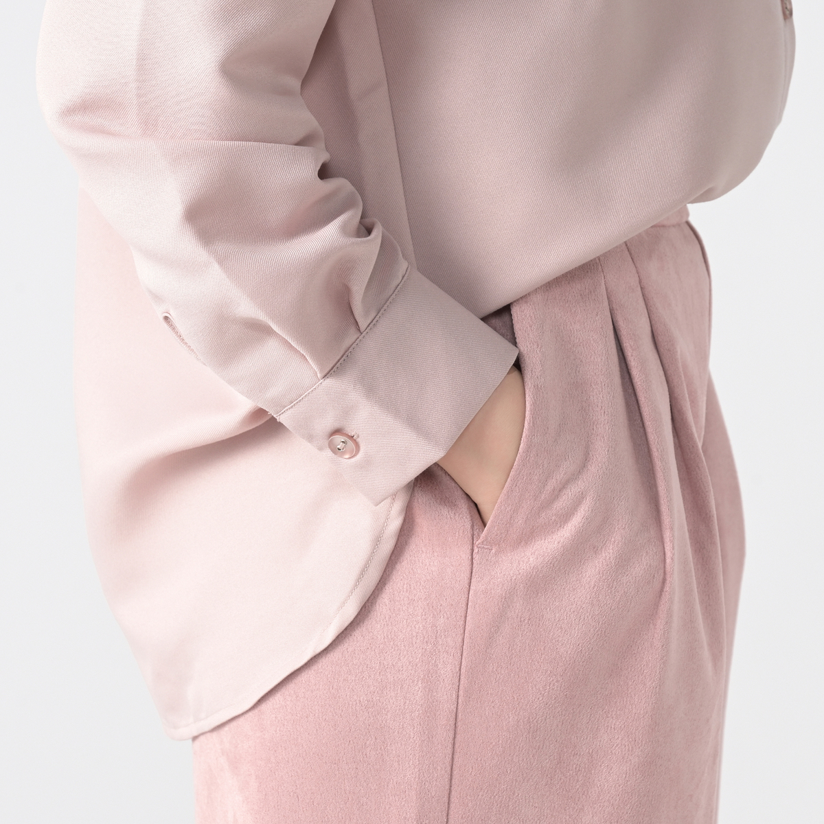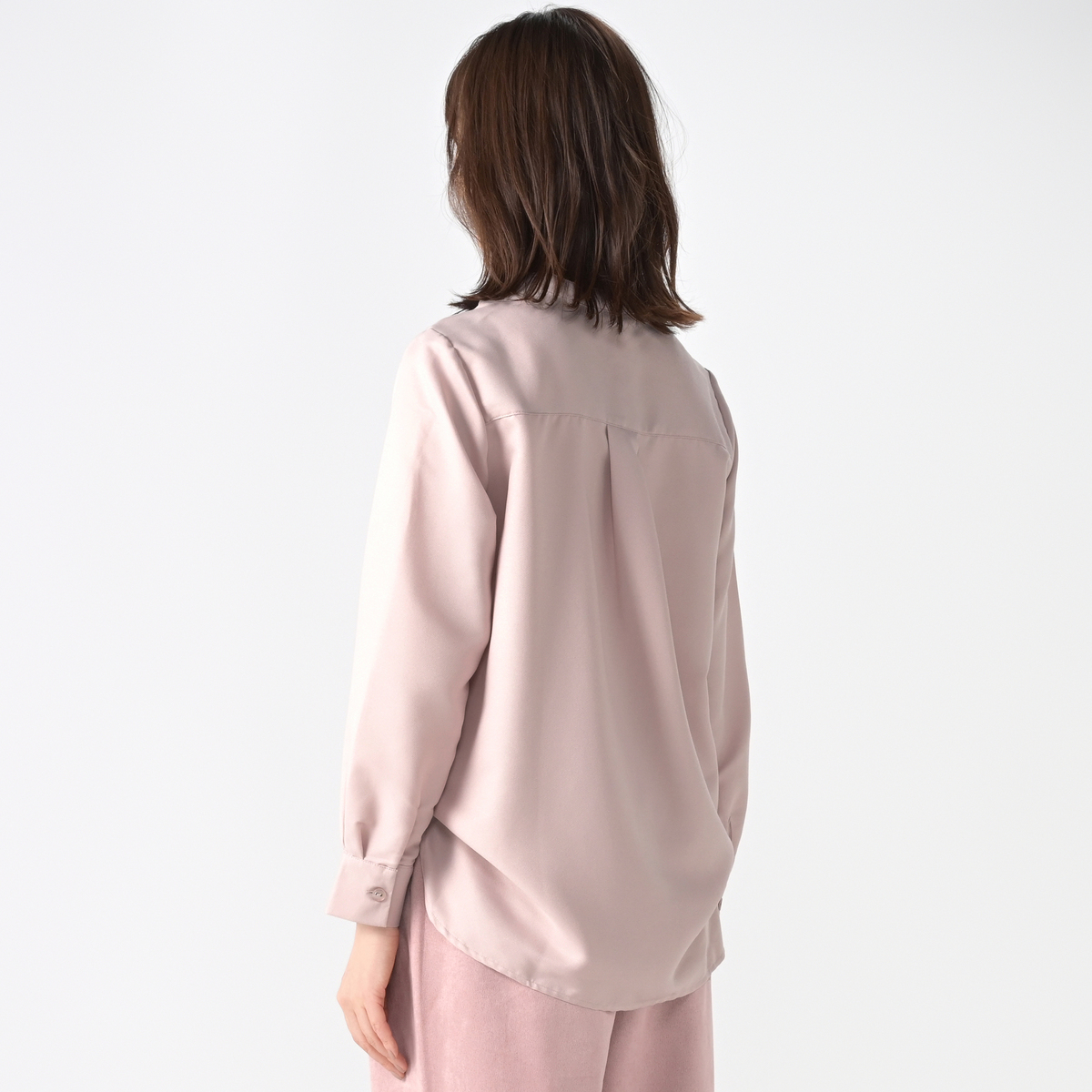 程よく柔らかな素材感で、なめらかな肌触りと自然な光沢感があり、綾目の立体感がさりげなく華やかさを添えるブラウス。ヒップが隠れる丈感とボックスシルエットは、動くたび美しいドレープを描き、フェミニンな雰囲気を演出します