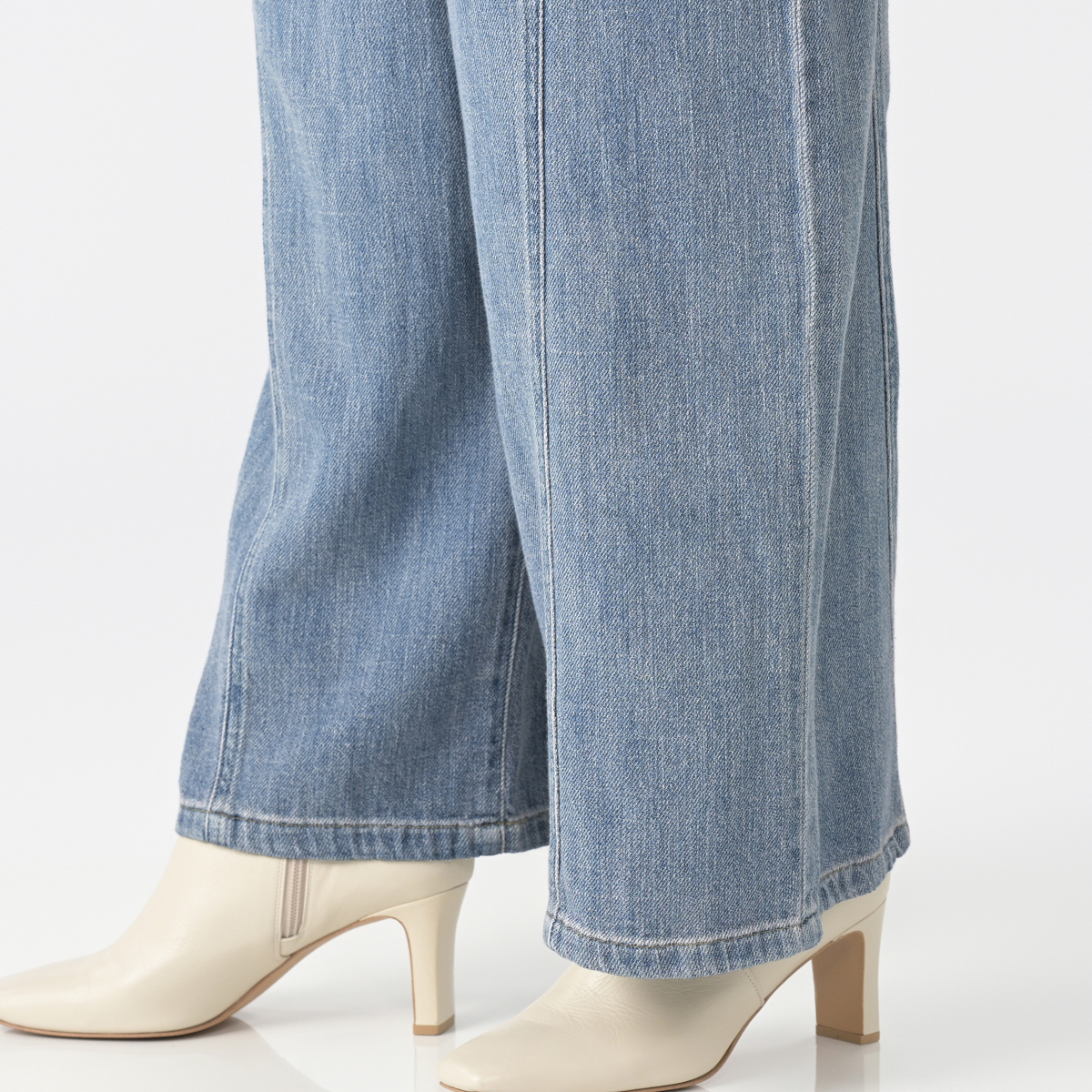 まずは、商品名に偽りなし! やわらかいです。 夏にも着用できそうです。 生デニムとおっしゃっていたように、これは育て甲斐がありそうな生地ですね。 バギーパンツというのを初めて購入しましたが、立体的に見えるデザインのおかげで実際の広いわたり幅のサイズも錯覚で控えめに見えていいです。 ヒップが大きいため、サイズとにらめっこでなかなかパンツを購入できなくて困っていますが、今回はサイズ的に入りそうだったので購入に至りました。ワイドはサイズが難しそうだったのでバギーにしました。甘織りのおかげで伸縮性も少しあるため私の大きなおしりも無事に収まり自由に動くことができました(笑)ファスナーがなくボタンのみ本開き仕様が案外気に入ってます。下腹部あたりが余計なものがなくスッキリみえしていいです。 丈は短い方を購入しましたが、短い私の足にピッタリの丈で最高です(笑) 体型的に股ズレしてしまうと思いますが、なんとか息長く着用できるように大事に育てていきたいです。 今後もデニムの商品を色々期待しています。