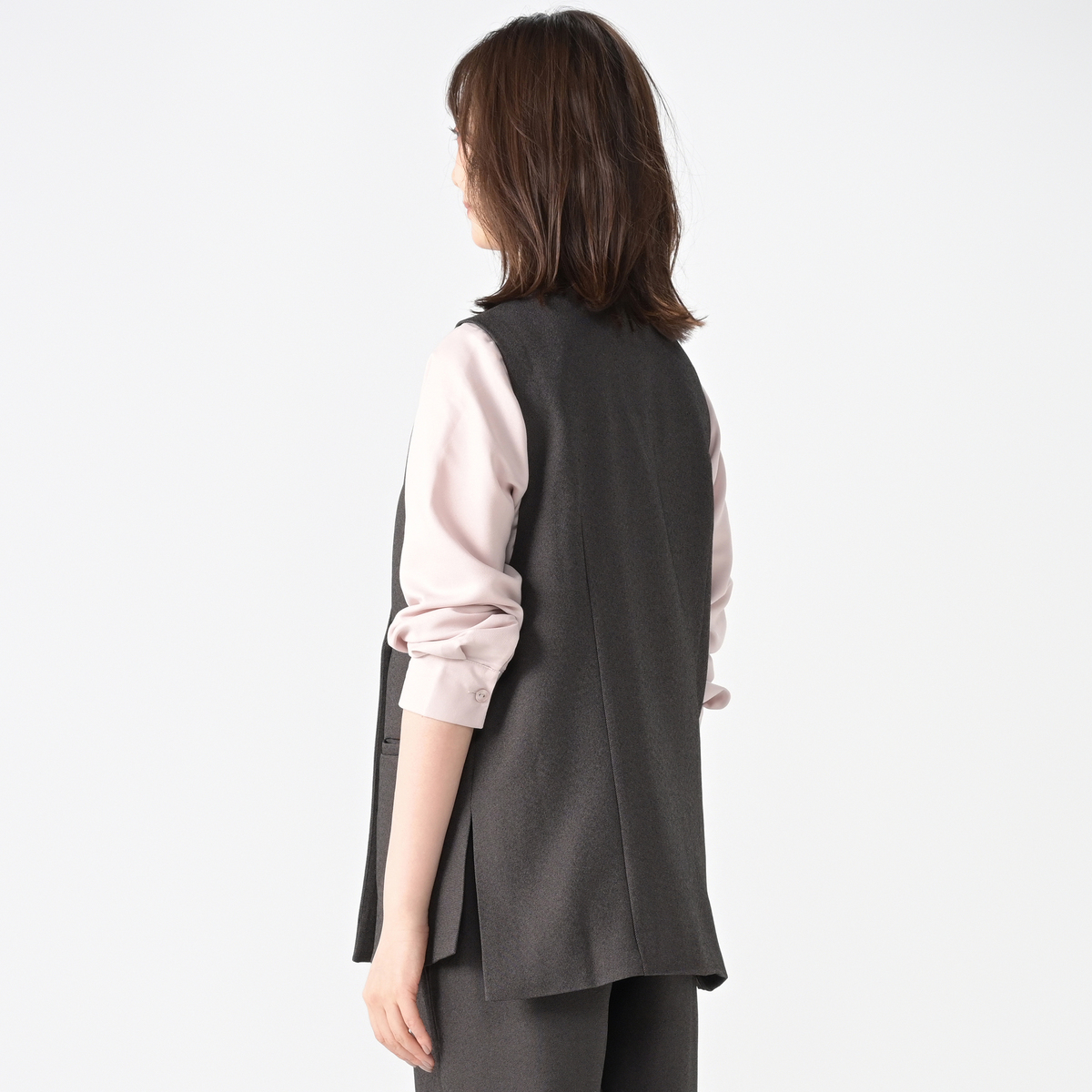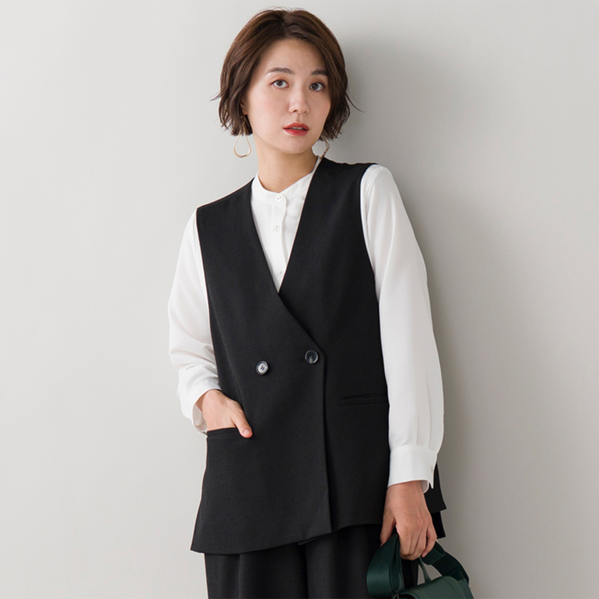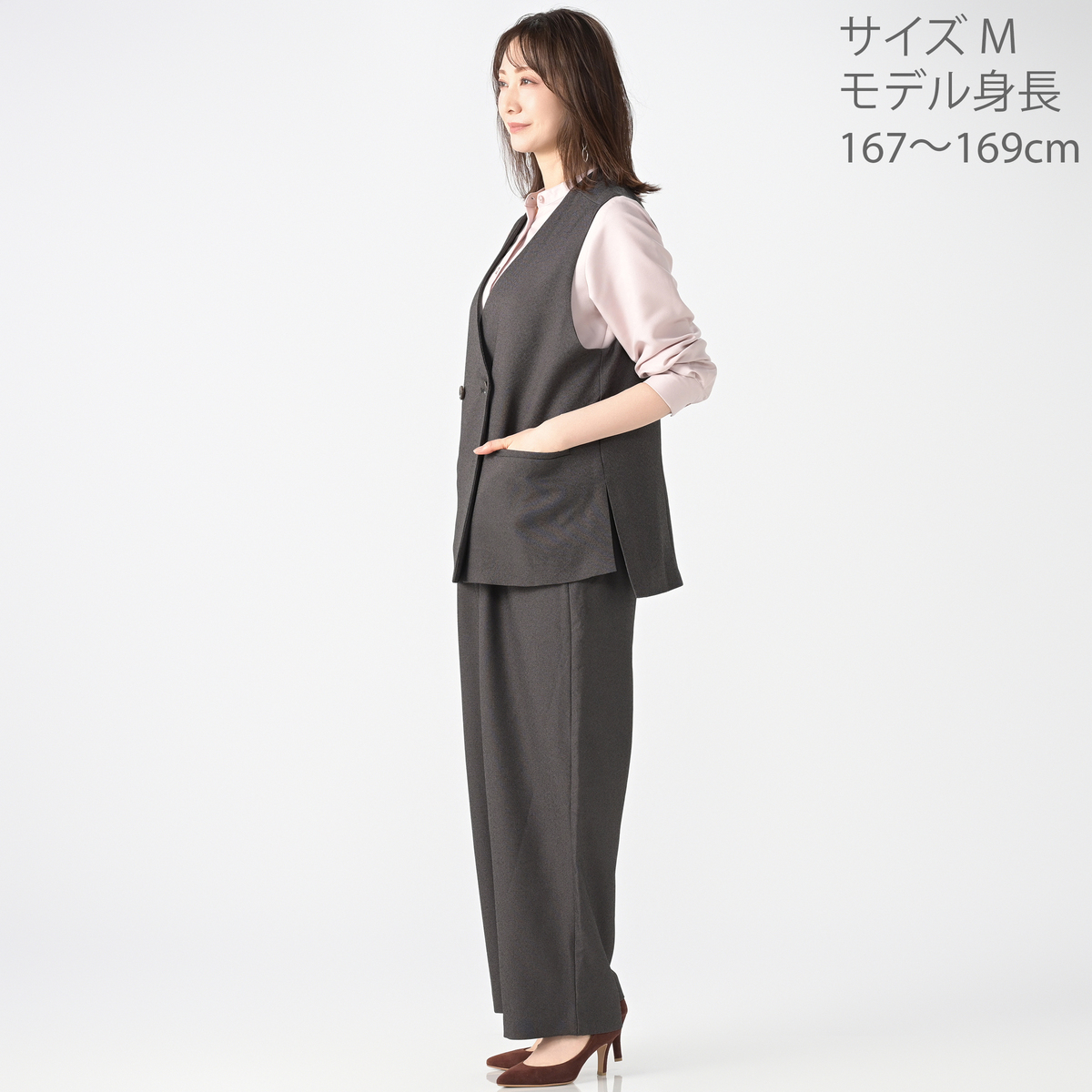 ワイドパンツとセットアップにしたくて購入しました。 ジレはそれほどシワも気にならず、サイズも大き過ぎることはなかったのですが、やはり生地が値段相当でした。 ウールにも見えない薄手の生地で高見えもしませんし、セットアップとして着用するつもりでしたが、残念ですが返品させていただきました。 価格を上げて、もう少しウール感のある生地であれば、まだ良かったのかなというのが感想です。