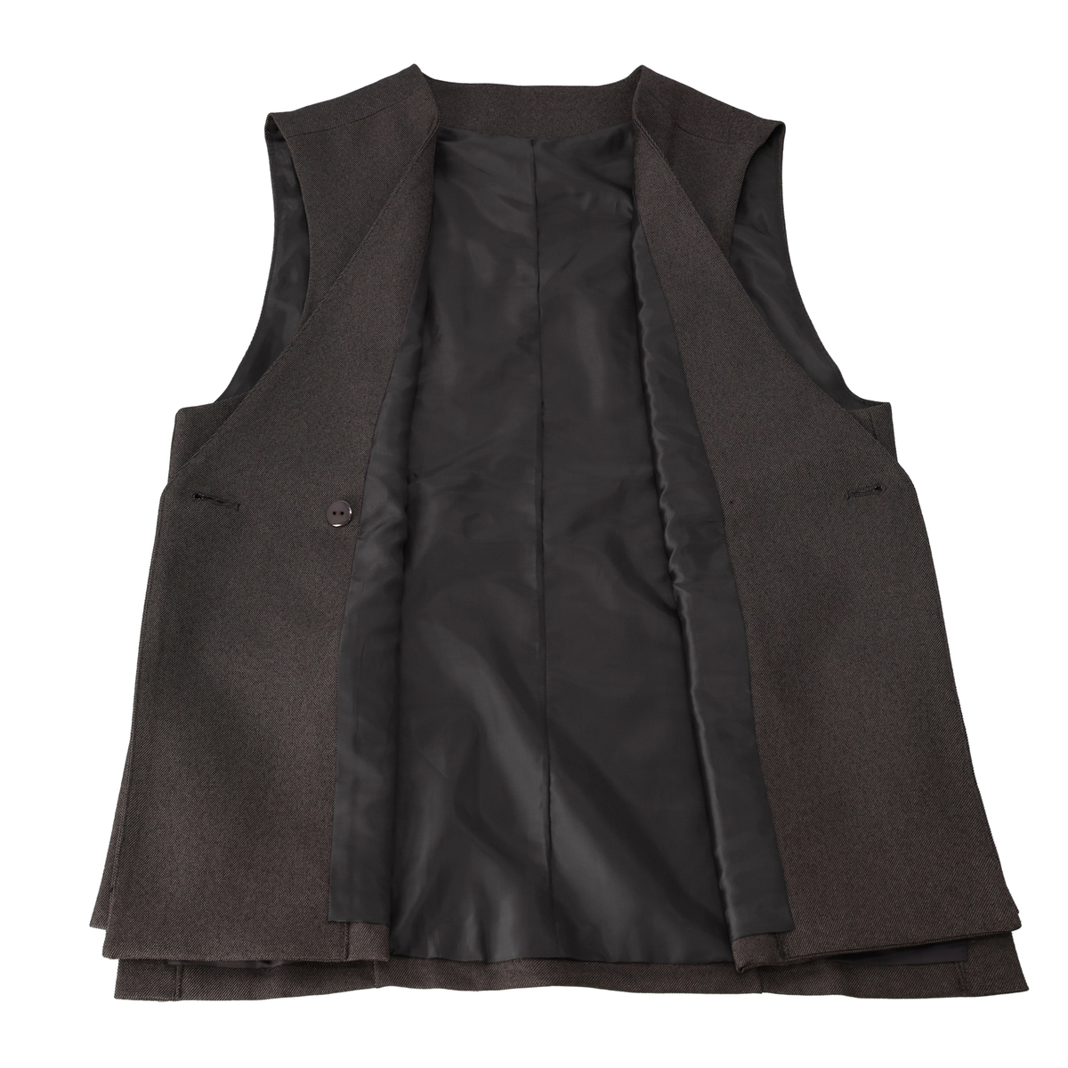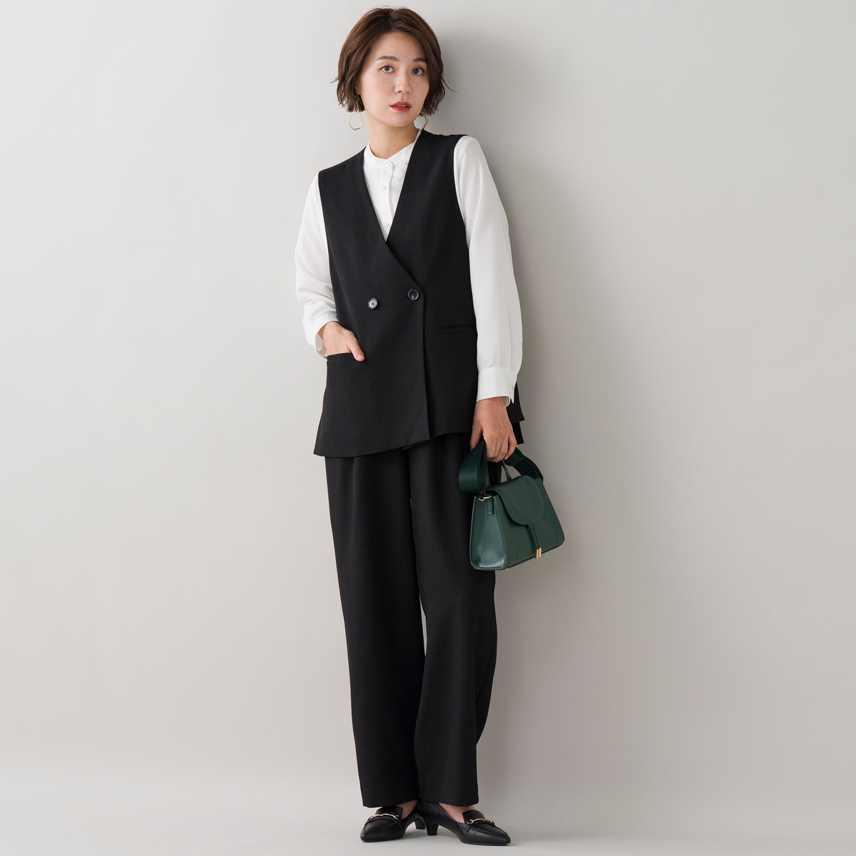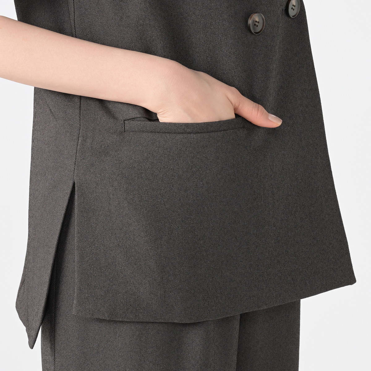 ワイドパンツとセットアップにしたくて購入しました。 ジレはそれほどシワも気にならず、サイズも大き過ぎることはなかったのですが、やはり生地が値段相当でした。 ウールにも見えない薄手の生地で高見えもしませんし、セットアップとして着用するつもりでしたが、残念ですが返品させていただきました。 価格を上げて、もう少しウール感のある生地であれば、まだ良かったのかなというのが感想です。