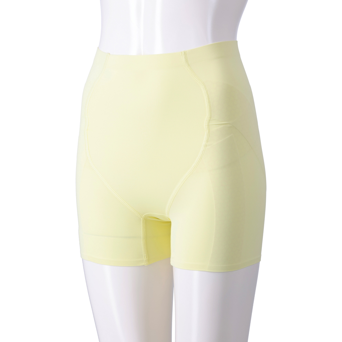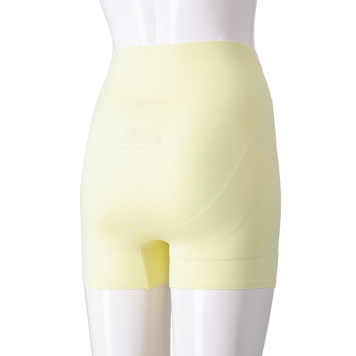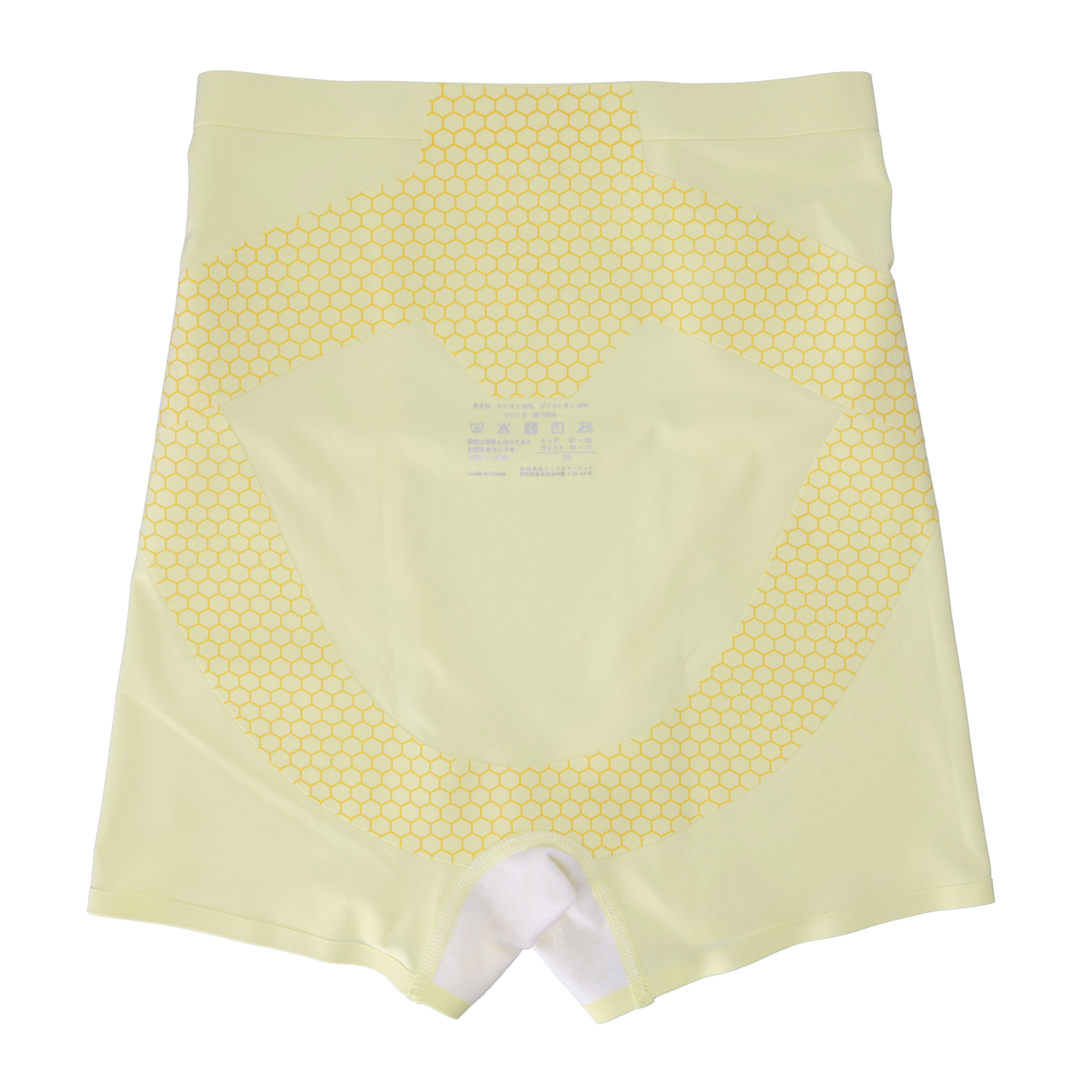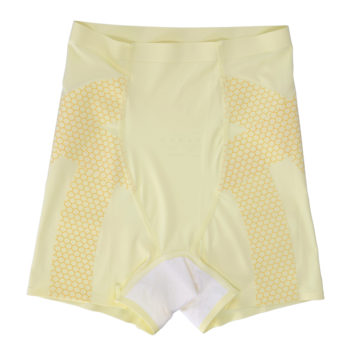 腹部までカバーできるようなハイウエスト、歩きやすいように二分丈を採用。ヒップラインのサポートにより体型カバーも。身生地部分は伸びが良く、ハニカムプリント部分は伸びにくい仕様にすることで、締め付けないサポートが可能です