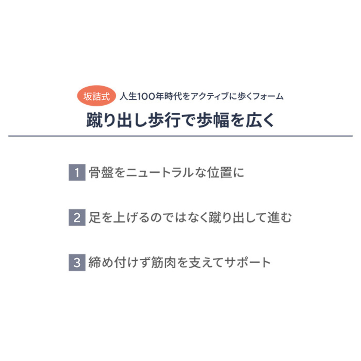 腰椎から仙骨を支えるパット、股関節を包み込みながら歩行を安定させるクロスベルト、大殿筋・中殿筋を下からサポートするヒップアップベルト、腸腰筋の曲げ伸ばしをサポートするベルトの4種のテーピングベルトで、軽やかな1歩をサポートします