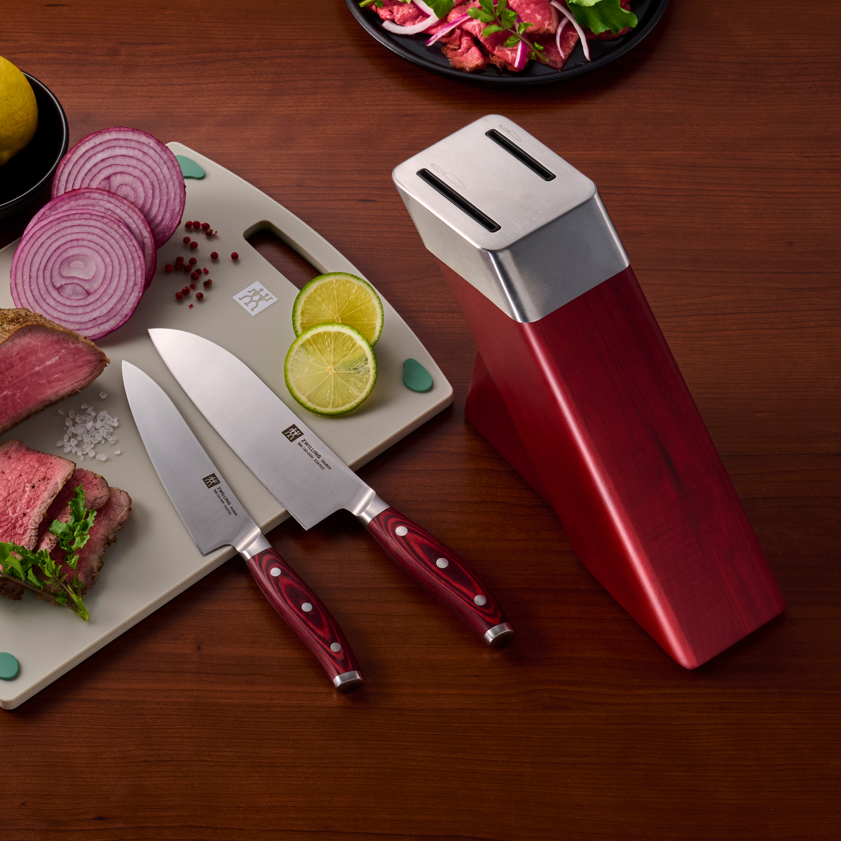 ドイツ生まれのキッチンウェアブランド「ツヴィリング」から、お料理がもっと楽しくなる3点セットをご紹介。使い勝手の良い三徳包丁と、刃渡り15cmで取り回しやすいサイズ感のコンパクトシェフ、シャープナー付きのナイフブロックをセットにしました