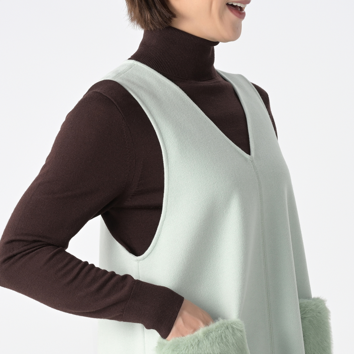 暖かみのある素材感で、寒い季節に活躍。前後中心は3本針で始末し、すっきりとした仕上がりです