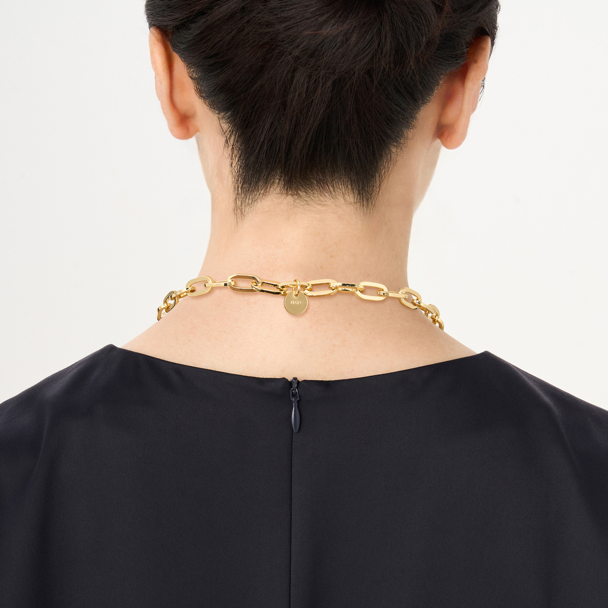 輝きを放つゴールドカラーのチェーンネックレス。胸元を華やかに彩ってくれます