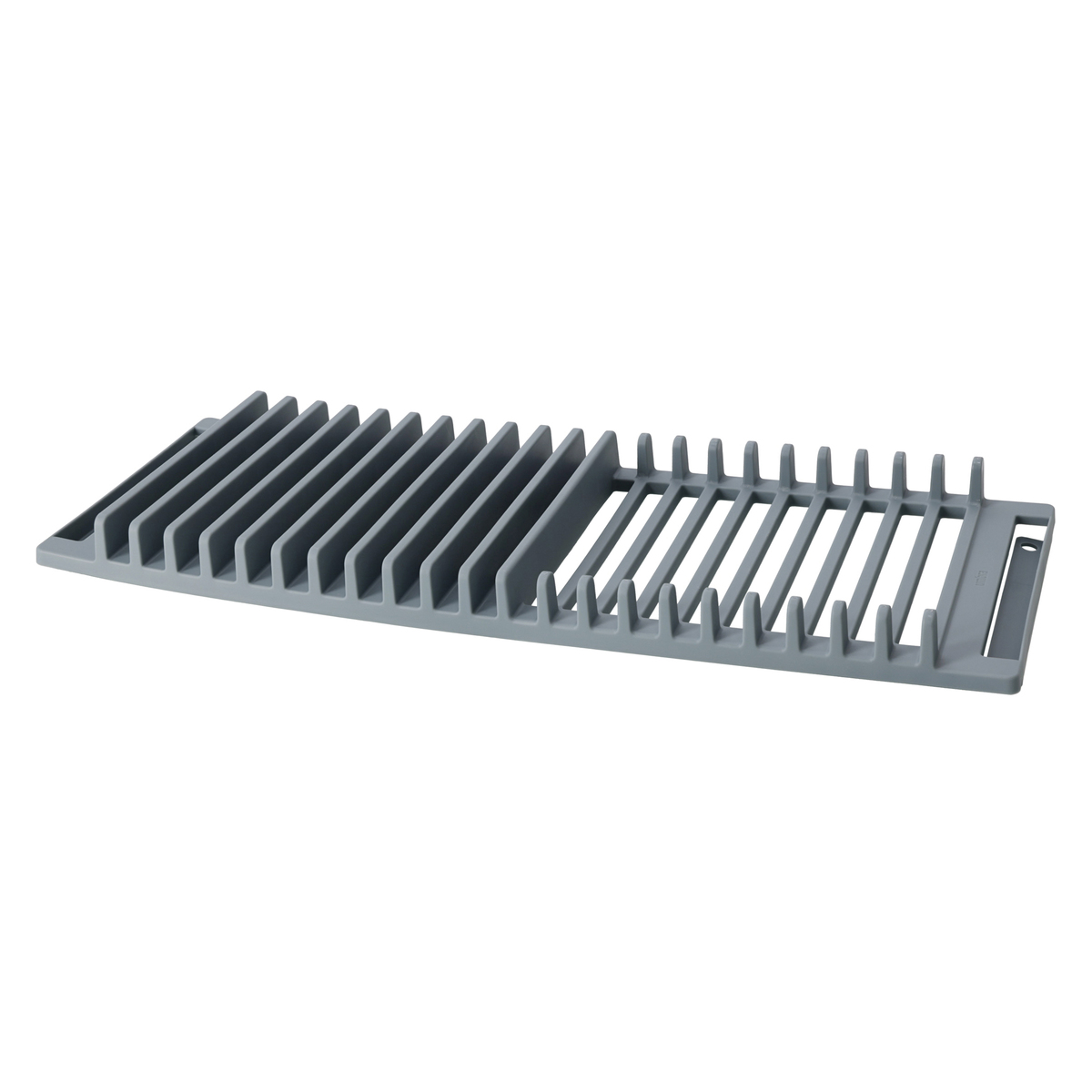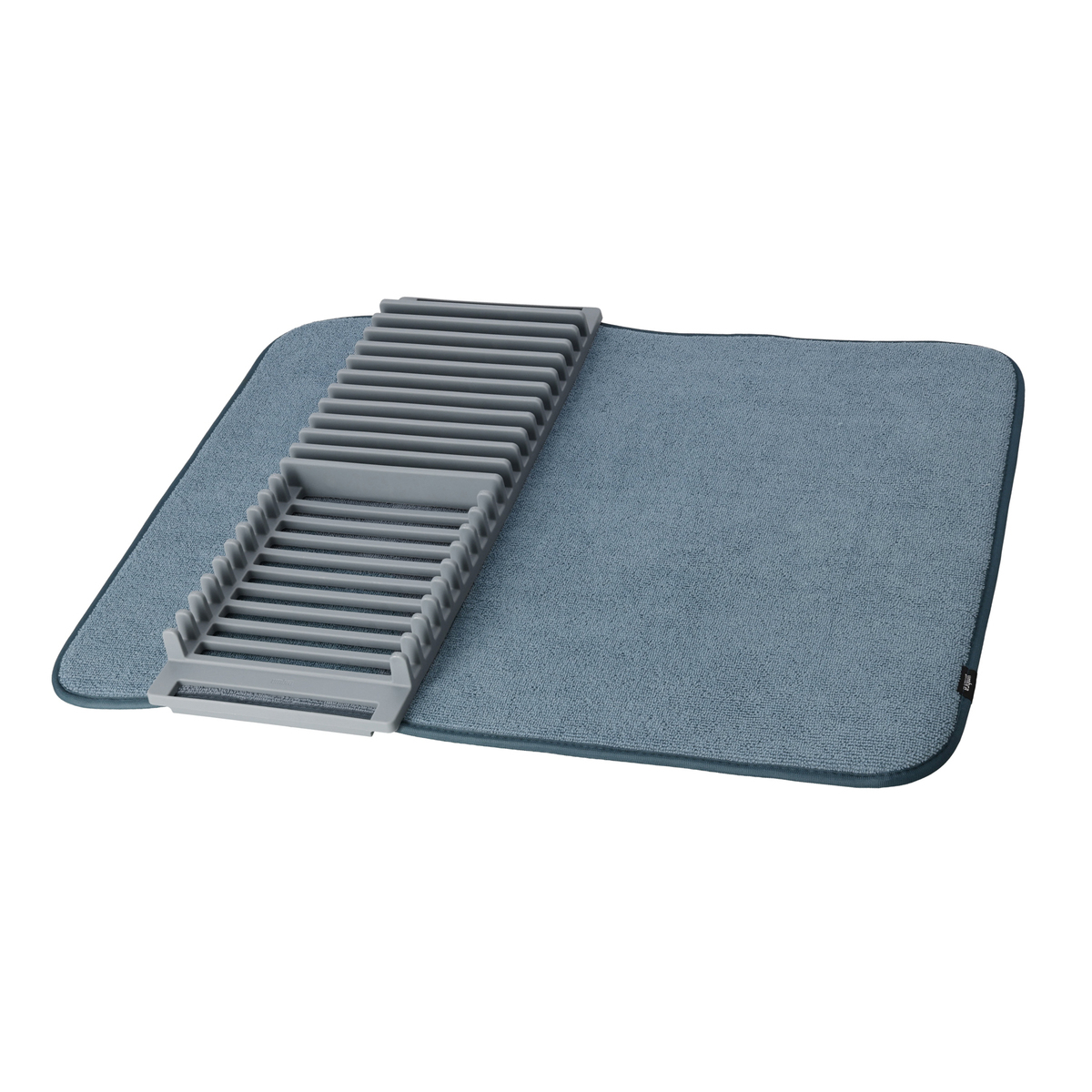 マットにラックの付いた新感覚のディッシュラック。ラックは取り外しでき、干す物に応じてマットの端か中央に設置できます。ラックは、カトラリーや包丁などの細長い物とお皿や蓋などの平らな物を乾かすことができます。使用しない時には折り畳むことができるので、省スペースで収納できて持ち運びにも便利です