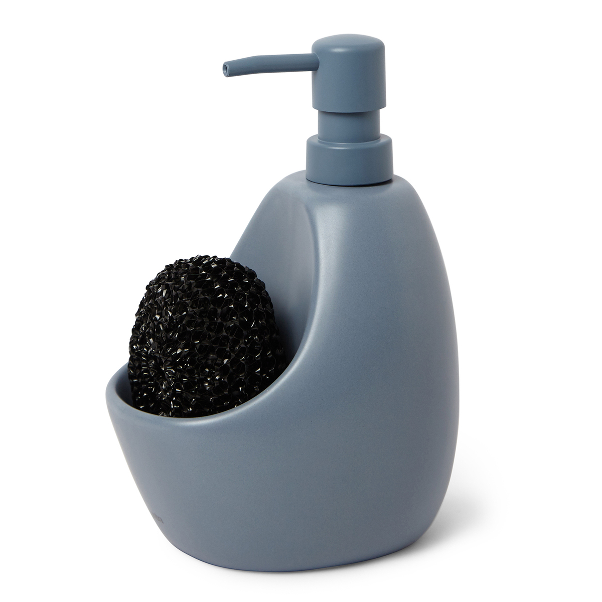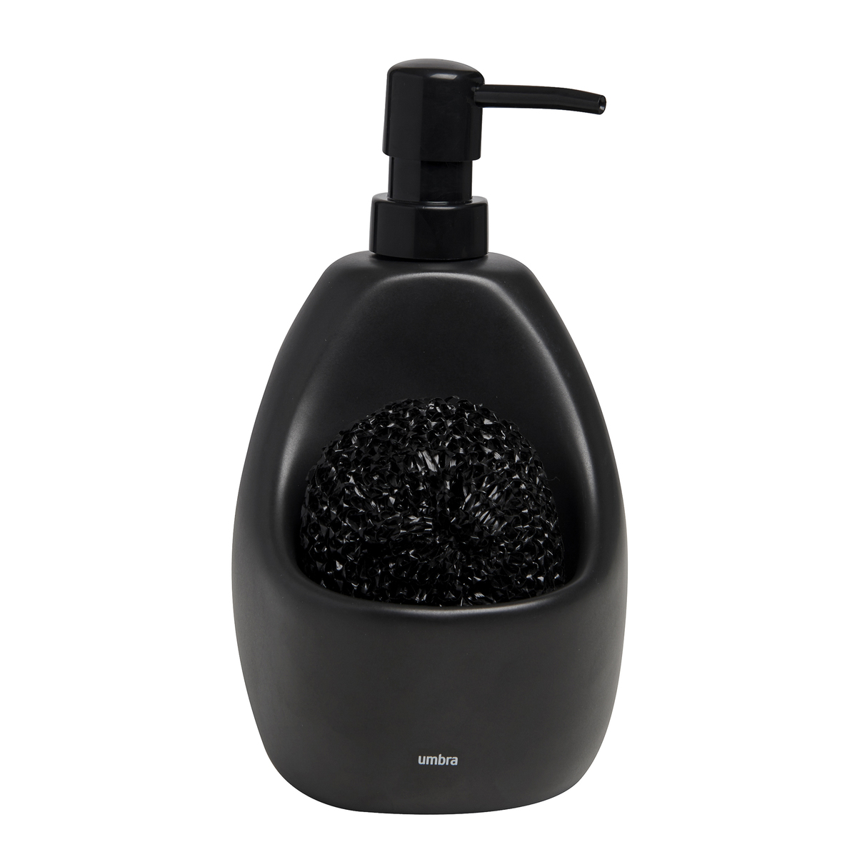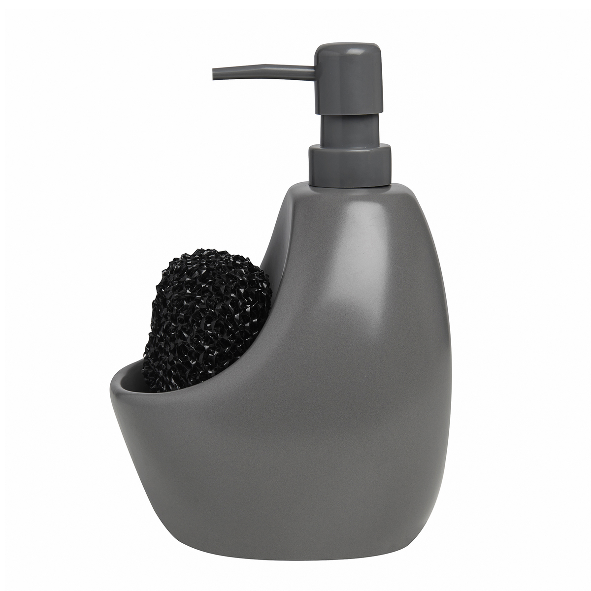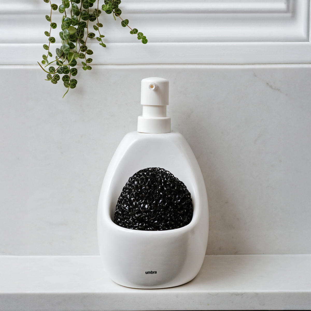 スポンジホルダーが付いた陶器製ソープポンプ。シックなカラーのスポンジもセットに。シンク周りがすっきり整います