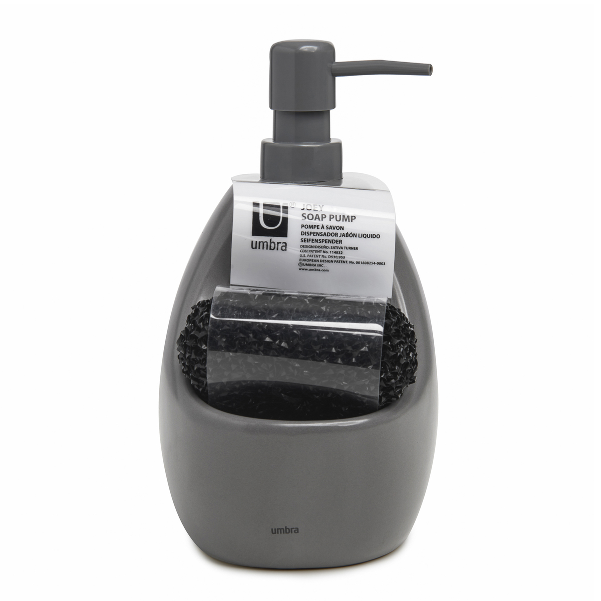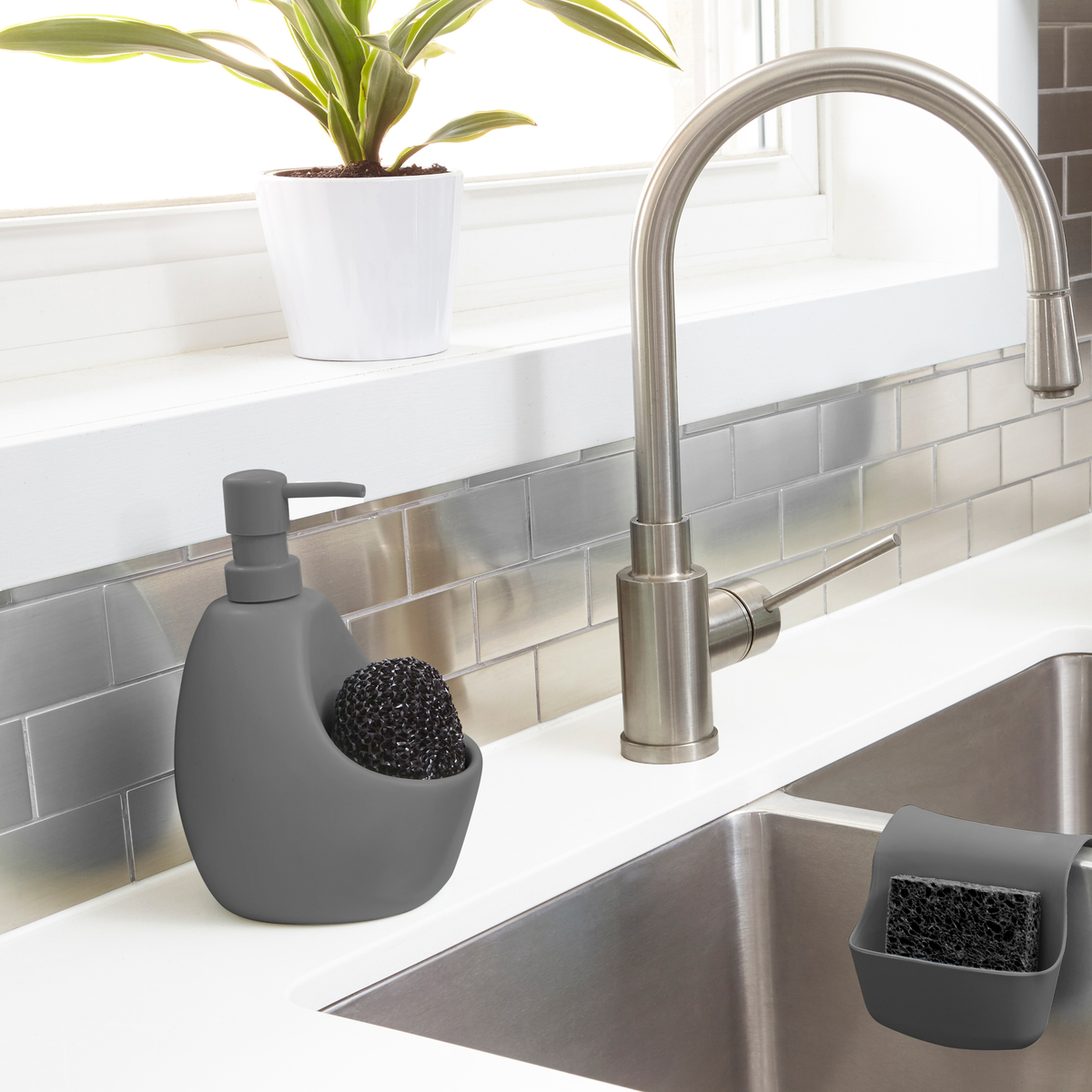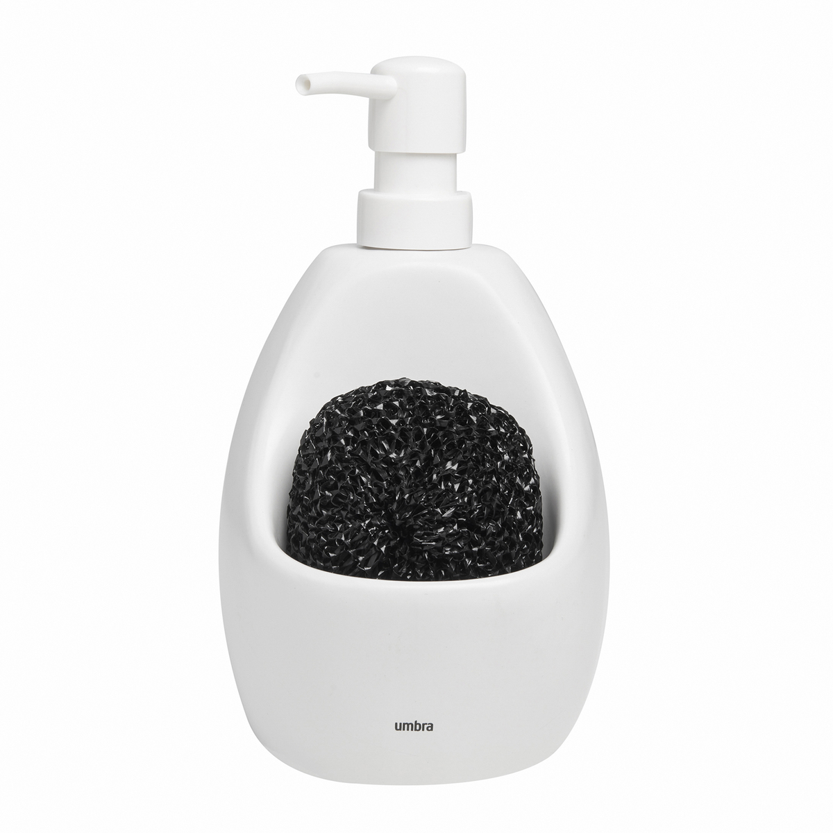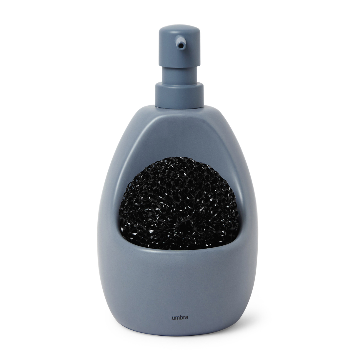 スポンジホルダーが付いた陶器製ソープポンプ。シックなカラーのスポンジもセットに。シンク周りがすっきり整います