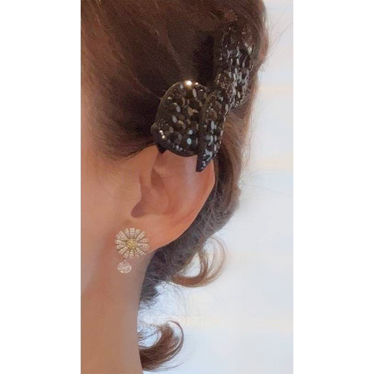 髪をハーフアップにする時に使いたいと思い購入しました。ブラックのグリッターが主張しすぎず素敵です。モデルさんがオンエアでお洋服の胸元につけていましたが私も挑戦してみたくなる使い方でした。ジュエリーの色々な使い方をいつも参考にさせて頂いているのでジンカさんのオンエアはいつも楽しみにしています。