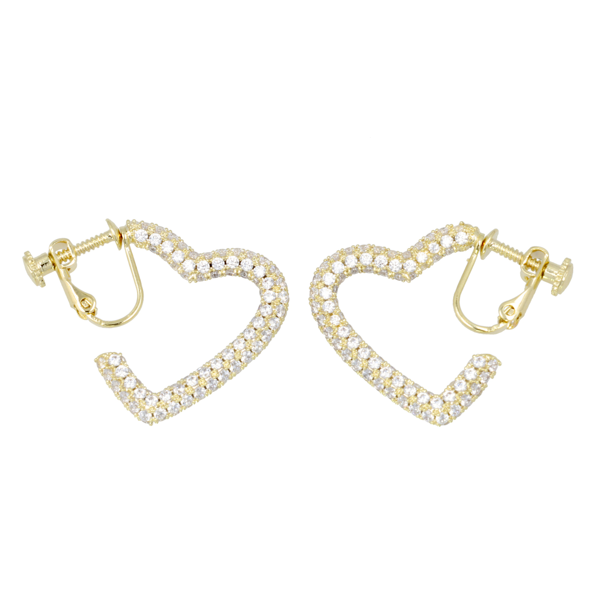 愛らしいハートのフォルムにキュービックジルコニアを散りばめた、フープイヤリングまたはピアス。1ペアで合計270石以上のキュービックジルコニアを使用しています。顔周りに華やぎと甘さを添え、普段使いから特別なシーンまでさりげなく存在感を放ちます