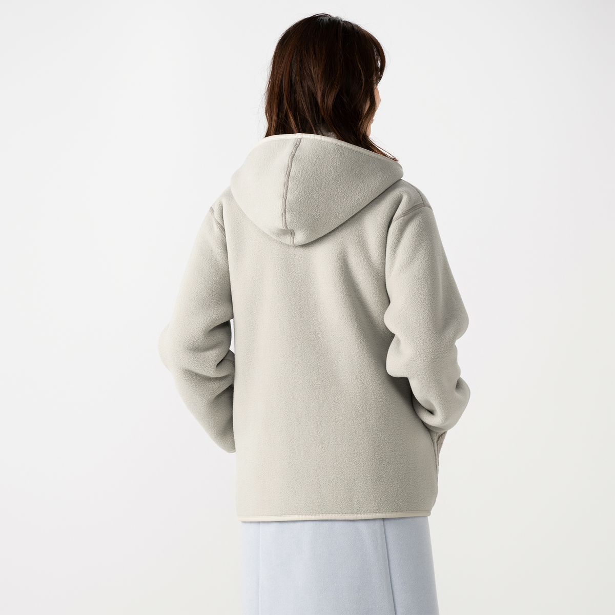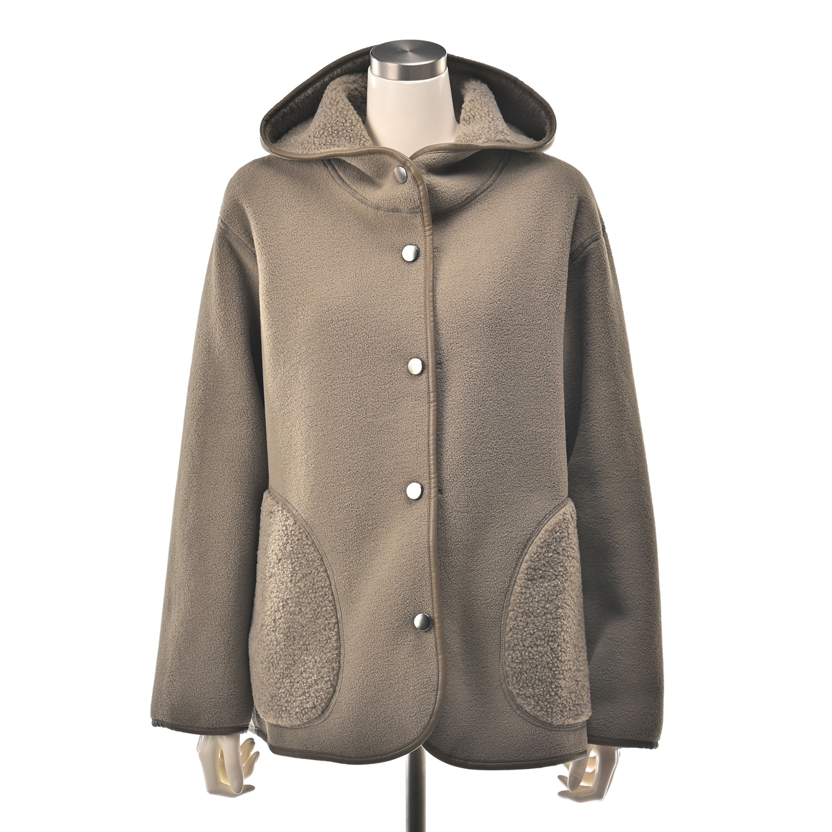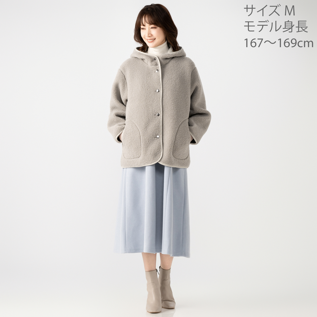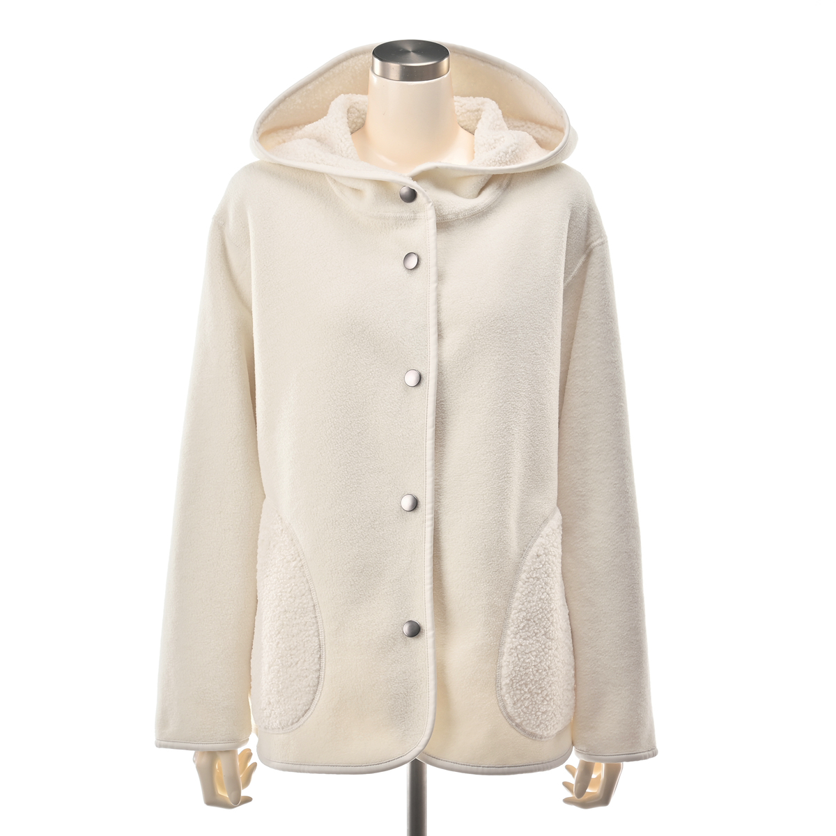 フリース側のポケットにはボア素材を使い、ふっくらとした立体感がかわいらしさを演出します。普段使いや外出時にさっと羽織れて、日々のコーデに活躍します