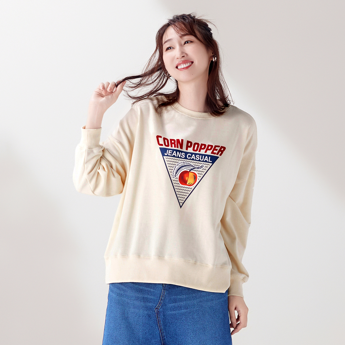 No. 747845 CORNPOPPER 裏毛プリント入りスウェットプルオーバー