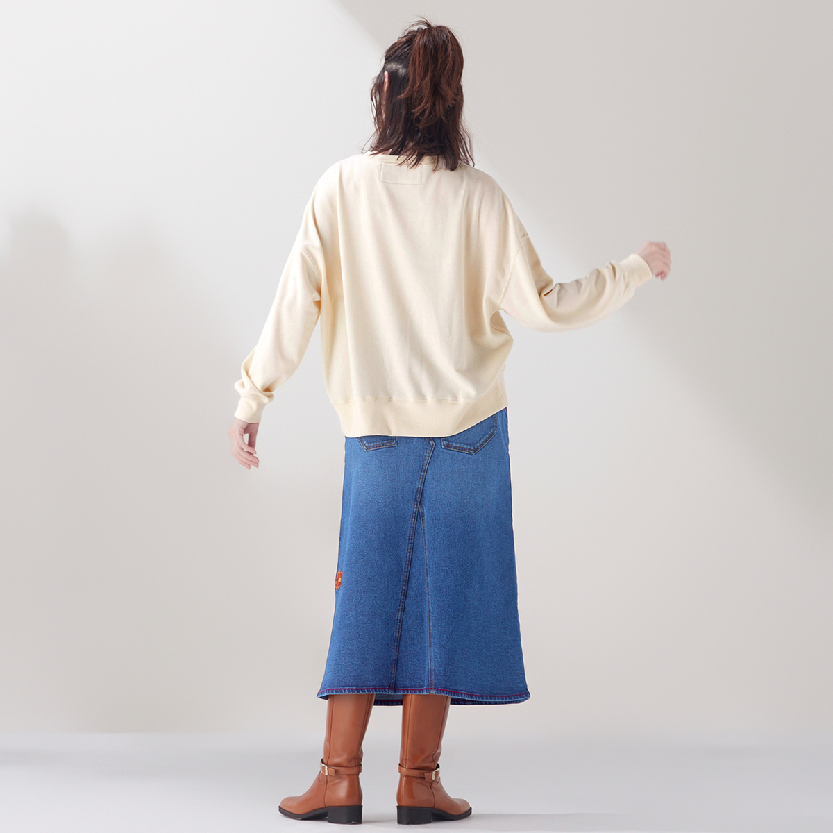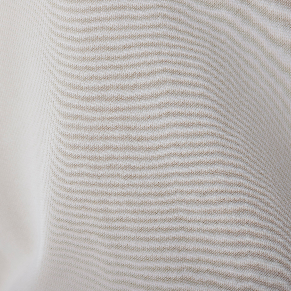 柔らかな風合いで程よい肉感の裏毛素材を使用。やや薄手のスウェット生地なので、アウターを羽織ってもモコモコしにくく、季節の変わり目には1枚でも着やすいです