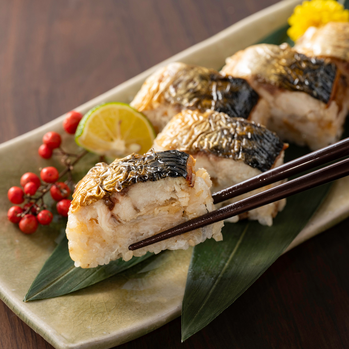 鯖の旨味が口の中に広がり、ふっくらと炊き上げた酢飯との相性もぴったりです。お米は解凍したときに最高の味になるように、国産のいくつかの品種をオリジナルでブレンド。酢飯との相性もよく、鯖の味わいを十分に引き出してくれる一品です