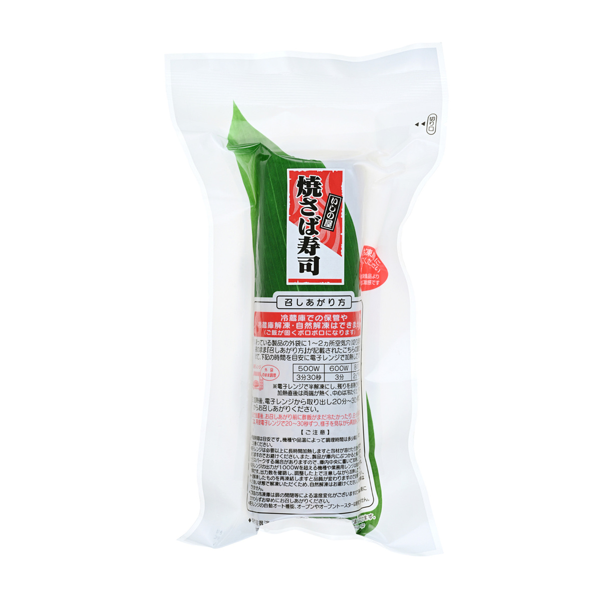 [アレルギー物質特定原材料8品目] 小麦 [内容量] 320g(8切れ)×4本 [賞味期限] 出荷時点で賞味期限まで80日以上ある商品をお届けします [保存方法] 開封前:冷凍(ー18℃以下)で保存してください 開封後:お早めにお召し上がりください [お召し上がり方] ・冷蔵庫での保管や冷蔵庫解凍・自然解凍はできません(ご飯が固くボロボロになります) 1.凍っている製品の外袋に1〜2カ所空気穴(切り目)を開け、袋のまま『召しあがり方』が記載されたこちらの面を上に向けて、下記の時間を目安に電子レンジで加熱してください 500W:3分30秒 600W:3分 800W:2分10秒 2.加熱後、電子レンジから取り出し20分〜30分放置してからお召しあがりください ※2で放置後、お召しあがり前に酢飯がまだ冷たかったり、白っぽく固い場合には、再度電子レンジで20〜30秒ずつ、様子を見ながら再加熱してください ※調理時間は目安です。機種や品温によって調理時間は多少異なりますので、ご注意ください ※電子レンジは必要以上に長時間加熱しますと包材が溶けたり変形する恐れがありますのでお避けください。また、製品が庫内にぶつかると稀に包材が溶けたりスパークする場合がありますので、庫内中央に置いて加熱してください ※電子レンジの出力が1000Wを超える機種や業務用レンジは急激に加熱され危険です。出力数を確認し調製した上で注意しながら加熱してください [注意事項] ※電子レンジの自動オート機能、オーブンやオーブントースターは使用できません ※より良い状態で解凍いただくため、目然解凍はお避けください。冷蔵庫解凍はできません ※ご家庭の冷凍庫は扉の開閉等による温度変化がございますので、賞味期限にかかわらずお早めにお召し上がりください [原料原産地] 焼きさば(さば(ノルウェー又はイギリス))、精白米(国産) [原産国] 日本 [原材料] 焼きさば(さば(ノルウェー又はイギリス)、食塩、発酵調味料)、精白米(国産)、すし酢(米酢、砂糖、食塩)、かんぴょう煮(かんぴょう、しょうゆ(小麦・大豆を含む)、砂糖)、しいたけ煮(しいたけ、しょうゆ、砂糖)、しょうが、白ごま、焼きのり、なたね油、米酢