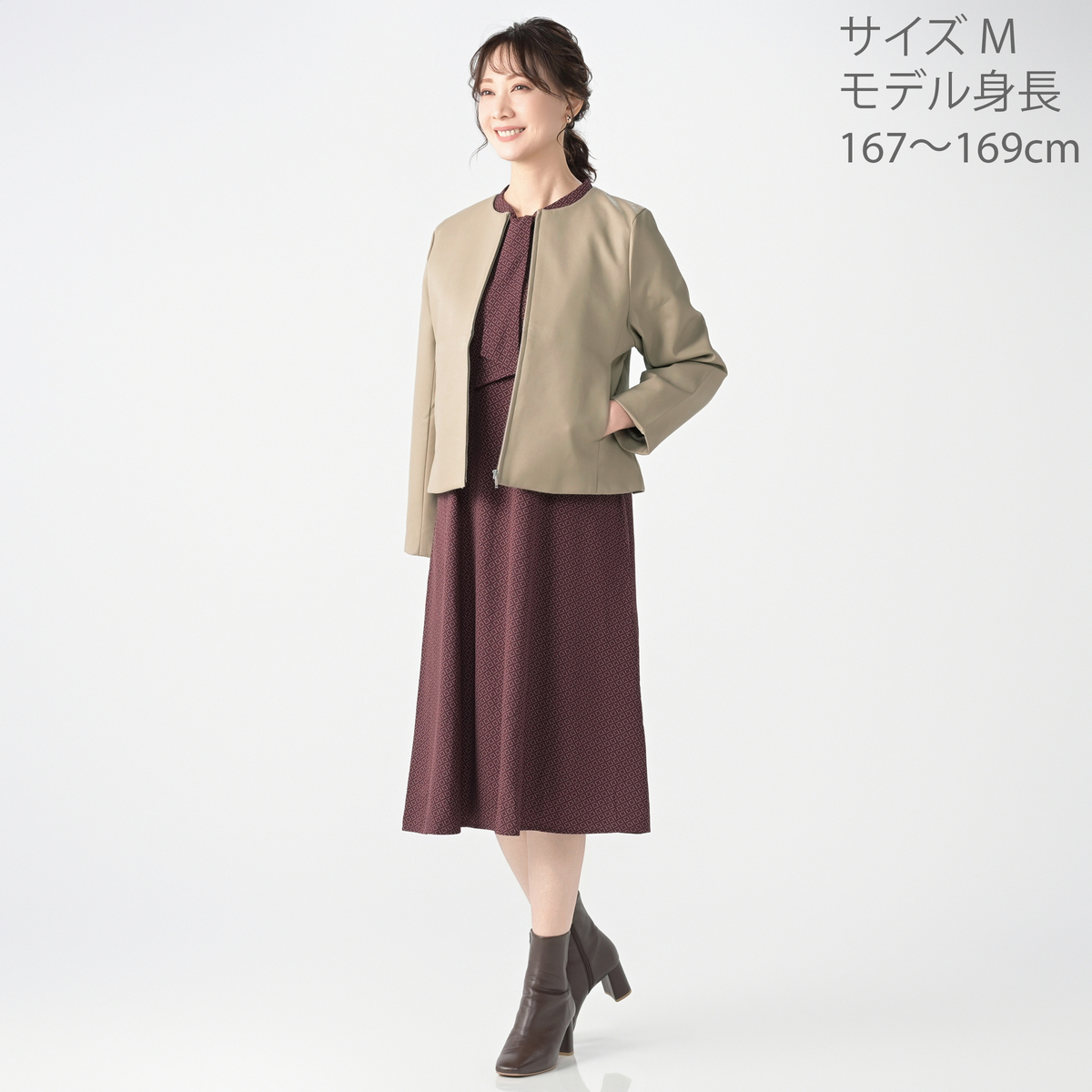 [商品寸法(ヌード)cm] サイズ バスト 着丈 肩幅 S: 89(72〜80) 50.5 37 M: 94.5(79〜87) 51.5 38 L: 100.5(86〜94) 52.5 39 LL: 106.5(93〜101) 53.5 40 3L: 112.5(100〜108) 54.5 41 サイズ 袖丈 S: 56 M: 57 L: 57.5 LL: 58.5 3L: 59 [素材] 表地:合成皮革 裏地:ポリエステル100% [お手入れ] 手洗い可 [注意事項] ※商品寸法の誤差は多少発生します。ご了承下さい ※濃色の場合は、汗や雨などで濡れた状態や強い摩擦等で他の製品に色移りする場合がありますのでご注意ください。他の物と分けて洗濯後、すぐに形を整えて干してください ※ドライクリーニングに出される時は、「石油系ドライクリーニング処理で十分な乾燥を行ってください」とご指示ください。ドライクリーニング後、溶剤が残った状態で着用されますと、皮膚を刺激し炎症の原因になることがありますので、ビニールカバー等を外して、風通しの良い所で十分に乾燥をしてください。特に溶剤の臭いがする状態では、着用しない様ご注意ください ※この製品は合成皮革を使用しています。過度の摩擦及びアイロン掛けはお避けください。軽度な汚れは、水または中性洗剤を布に湿らせて拭き取ってください。直射日光を避け、乾燥した所でハンガーに掛けて保管してください。時間の経過と共に劣化し剥離してくる特性があります。耐用年数は一般的に製造から約3年程度ですのでご了承ください 【中国製】