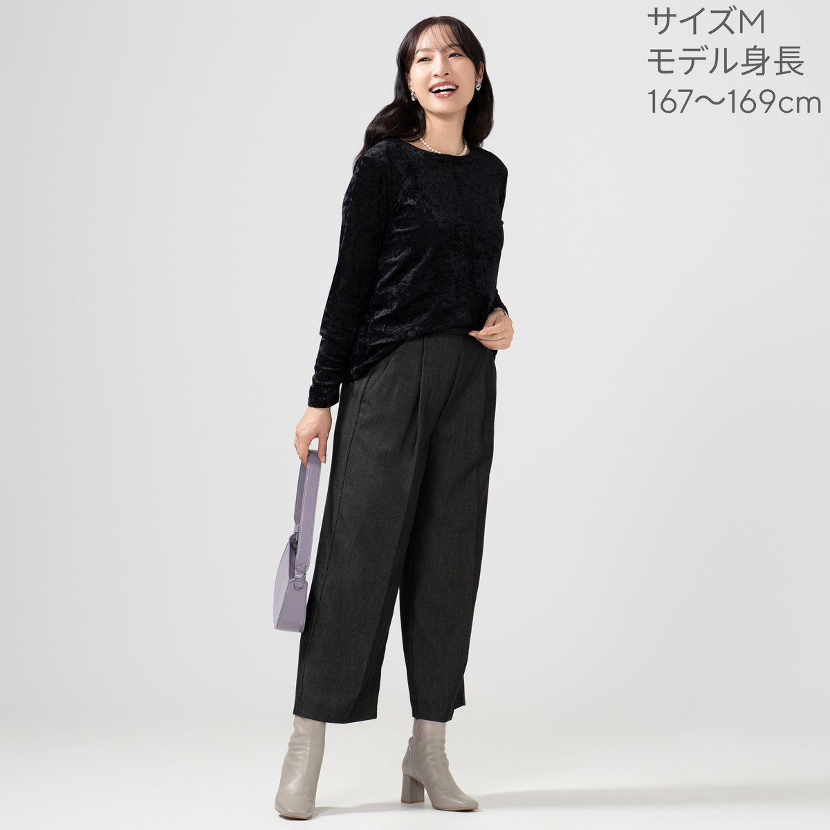 168.54ピタピタは嫌なのでL(BK) 全体がベロアでない(場所を選ばず)為 普段着で着れ、ネックの開き加減が 顔を小さく、首をスッキリ綺麗に 見せてくれとても気に入りました。