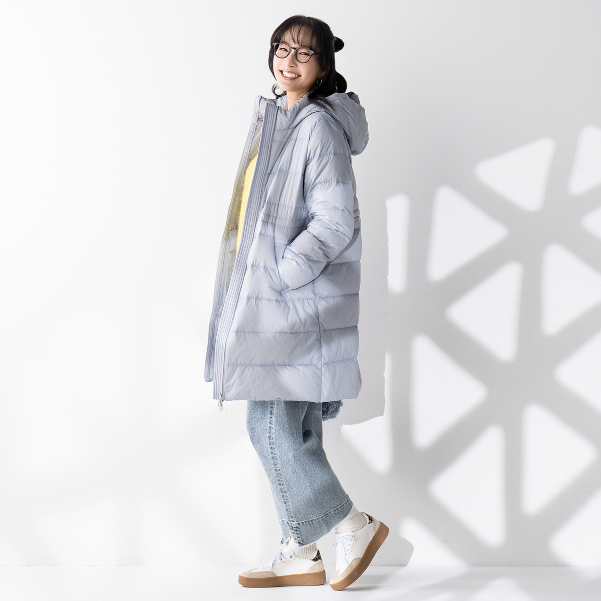 ダウン90%フェザー10%の軽くて暖かいロングダウンコート。シンプルなデザインがさまざまな装いに合わせやすく、Mサイズ約340g(目安)の軽量感で快適に過ごせます
