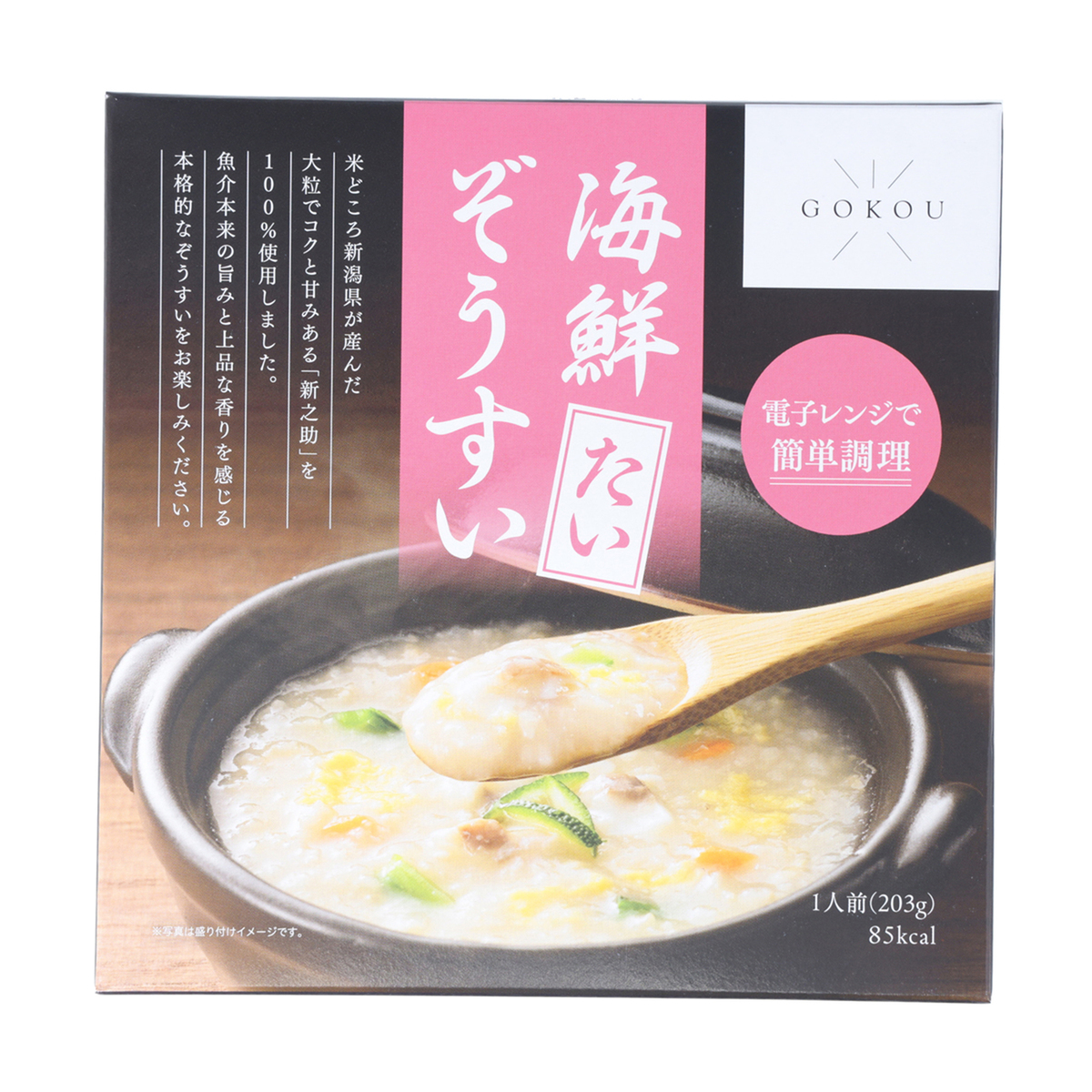 [アレルギー物質特定原材料8品目] 卵、小麦、乳、かに [商品内容] ・海鮮雑炊[かに] ・海鮮雑炊[たい] 各203g(雑炊200g、具材3g)x4食/計8食 [賞味期限] 出荷時点で賞味期限まで120日以上ある商品をお届けします [保存方法] 開封前:直射日光を避け、常温で保存してください 開封後:お早めにお召し上がりください [お召し上がり方] <電子レンジでの加熱(調理)方法> 1.雑炊と具材の袋を箱から出します 2.雑炊の袋の底面を十分に広げ、袋は開けずに必ず立てて電子レンジの中央に置く 3.電子レンジの加熱時間に従い加熱 4.加熱後、必ず蒸気が出ていないことを確認してから取り出す 5.袋の封を切り、温めた雑炊に具材を混ぜてお召し上がりください ※加熱時間の目安 500W:2分 600W:1分30秒 <熱湯での加熱(調理)方法> 雑炊の封は切らずにそのまま沸騰したお湯の中に入れ、3分加熱してから封を切り、温めた雑炊に具材を混ぜてお召し上がりください ※加熱時間の目安 3分 [注意事項] <共通> ※ぞうすいと具材を同時に電子レンジで調理する場合は、必ず中身を深めの耐熱容器に移しラップをかけて加熱してください ※袋が電子レンジの天井に触れる場合は、転倒するおそれがありますので、中身を深めの耐熱容器に移しラップをかけて加熱してください ※電子レンジのオート(自動)機能での加熱や、連続での目安時間以上の温めは、加熱中や加熱後の沸騰によるやけどの原因になりますのでおやめください ※) ※加熱中に音がする場合がありますが、蒸気口から蒸気が抜ける際に発生する音です ※加熱後は蒸気口とその付近が大変熱くなっていますので、絶対に触らないでください ※加熱中は袋が膨らみますが、蒸気口から蒸気が抜けます ※袋がしぼみ、蒸気口から蒸気が出ていないことを確認してから取り出してください ※加熱後は袋や中身が熱くなっていますので、やけどにご注意ください ※加熱後に電子レンジから取り出す際や開封時に袋を傾けると、蒸気口から中身がこぼれるおそれがあります ※開封の際に袋や切り口で手指を切らないようご注意ください ※加熱後は蒸気口が開くため保存できません ※加熱後はお早めにお召し上がりください [原料原産地] うるち米(新潟県産新之助) [原産国] 日本 [注意事項] <海鮮雑炊[たい]> ※骨の除去に関しましては万全を期しておりますが、取り残しがある場合もございますので十分にご注意ください <海鮮雑炊[かに] > ※蟹の小骨の除去に関しましては万全を期しておりますが、取り残しがある場合もございますので十分にご注意ください ※蟹の殻や筋が混入する場合がありますのでご注意ください [原材料] ■海鮮雑炊 [かに]: ■ぞうすい:うるち米(新潟県産新之助)、紅ずわいがに、食塩、しょうゆ、砂糖、濃縮鶏がらだし、濃縮だし(こんぶ、かつおぶし)、粗砕かつおぶし、たんぱく加水分解物、酵母エキス、こんぶエキス / 調味料(アミノ酸等)、(一部にかに・小麦・大豆・鶏肉・ゼラチンを含む) ■具材:乾燥小松菜(小松菜、ぶどう糖)、乾燥人参(人参、ぶどう糖)、卵加工品(鶏卵、乳糖、水あめ) / 加工デンプン、重曹、pH調整剤、(一部に卵・乳成分・小麦を含む) ■海鮮雑炊 [たい]: ■ぞうすい:うるち米(新潟県産新之助)、鯛、食塩、しょうゆ、砂糖、濃縮鶏がらだし、濃縮だし(こんぶ、かつおぶし)、粗砕かつおぶし、たんぱく加水分解物、酵母エキス、こんぶエキス / 調味料(アミノ酸等)、(一部に小麦・大豆・鶏肉・ゼラチンを含む) ■具材:乾燥小松菜(小松菜、ぶどう糖)、乾燥人参(人参、ぶどう糖)、卵加工品(鶏卵、乳糖、水あめ) / 加工デンプン、重曹、pH調整剤、(一部に卵・乳成分・小麦を含む)