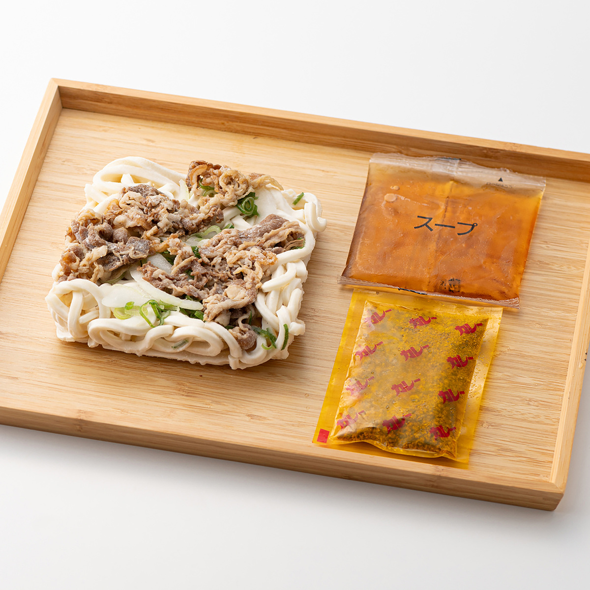 ご自宅に鍋があれば簡単に美味しく作れる、冷凍カレーうどんのセットです。一本一本丁寧に茹で上げた麺に、自社で作った具材をのせて冷凍。麺は茹でた直後の最もコシのある状態を急速冷凍することで、解凍するとしっかりしたコシが再現します