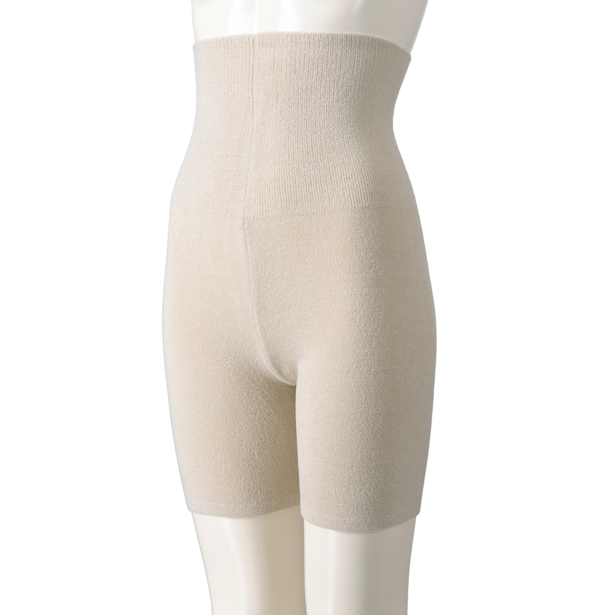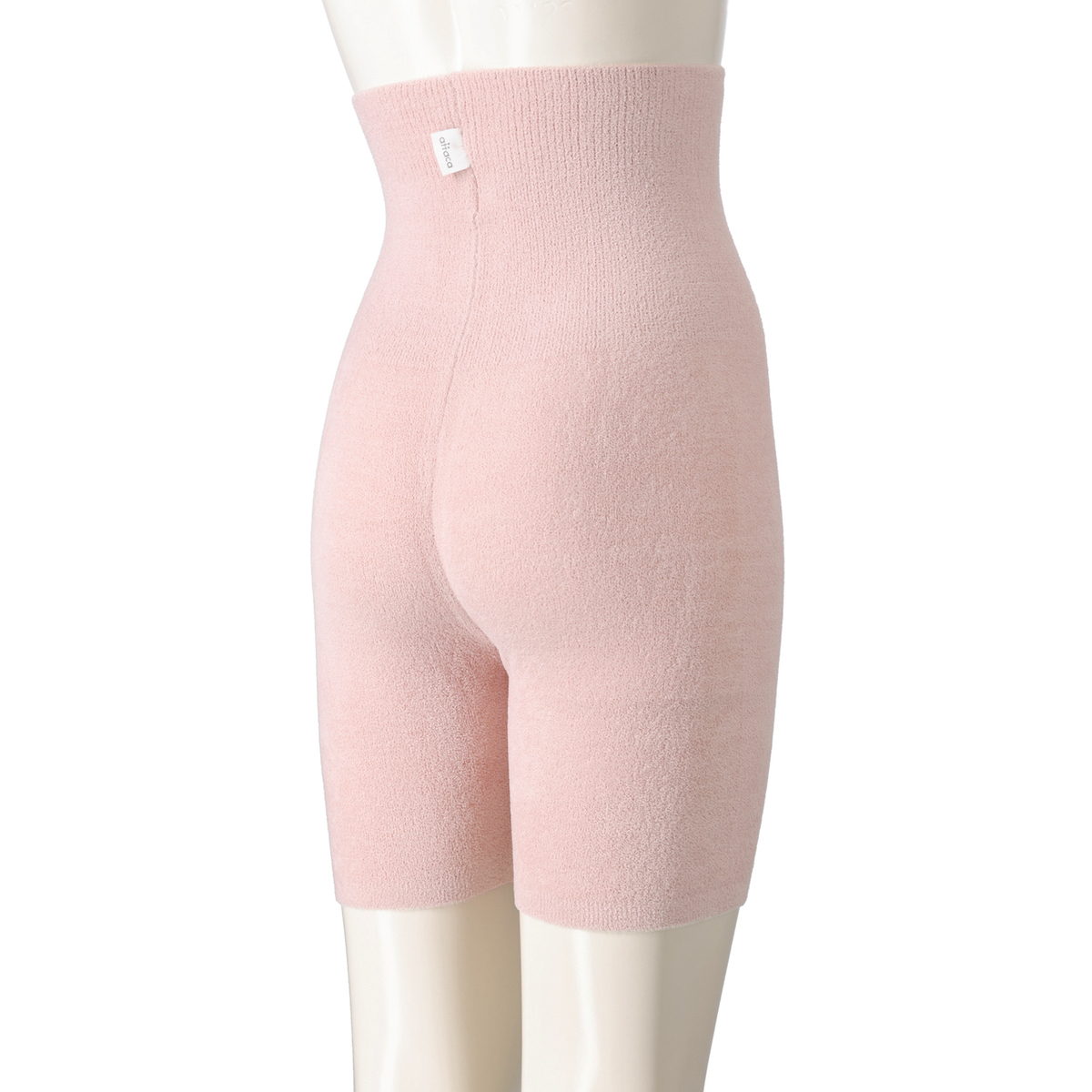 腹巻と一体のハーフパンツです。ウエストがもたつきにくく、腿にやさしくフィットするシルエット。脇の縫い代がないので、横になっても縫い代が肌に当たらず、気にならない仕様です