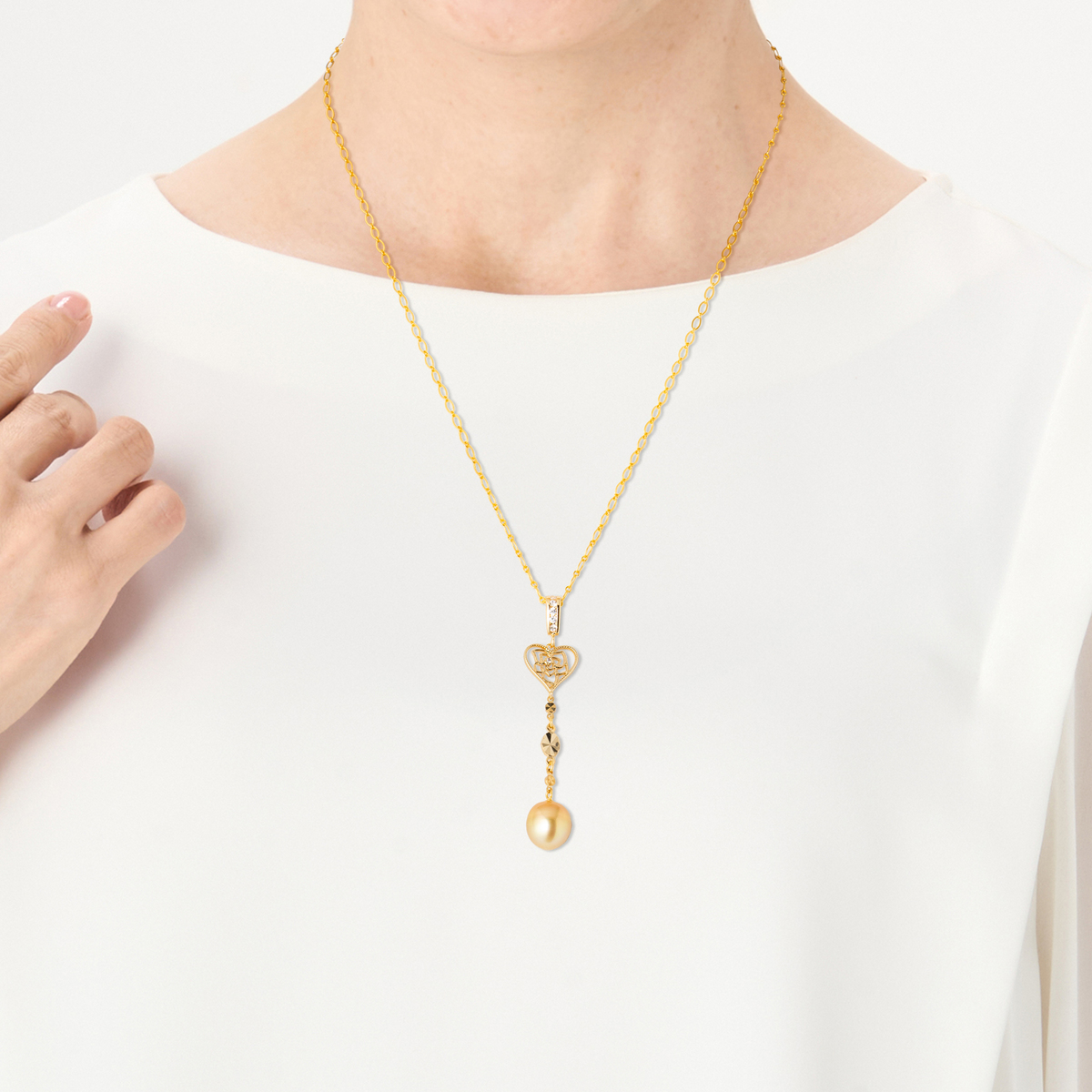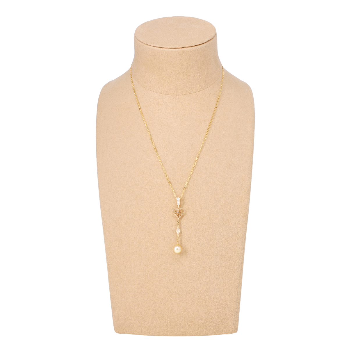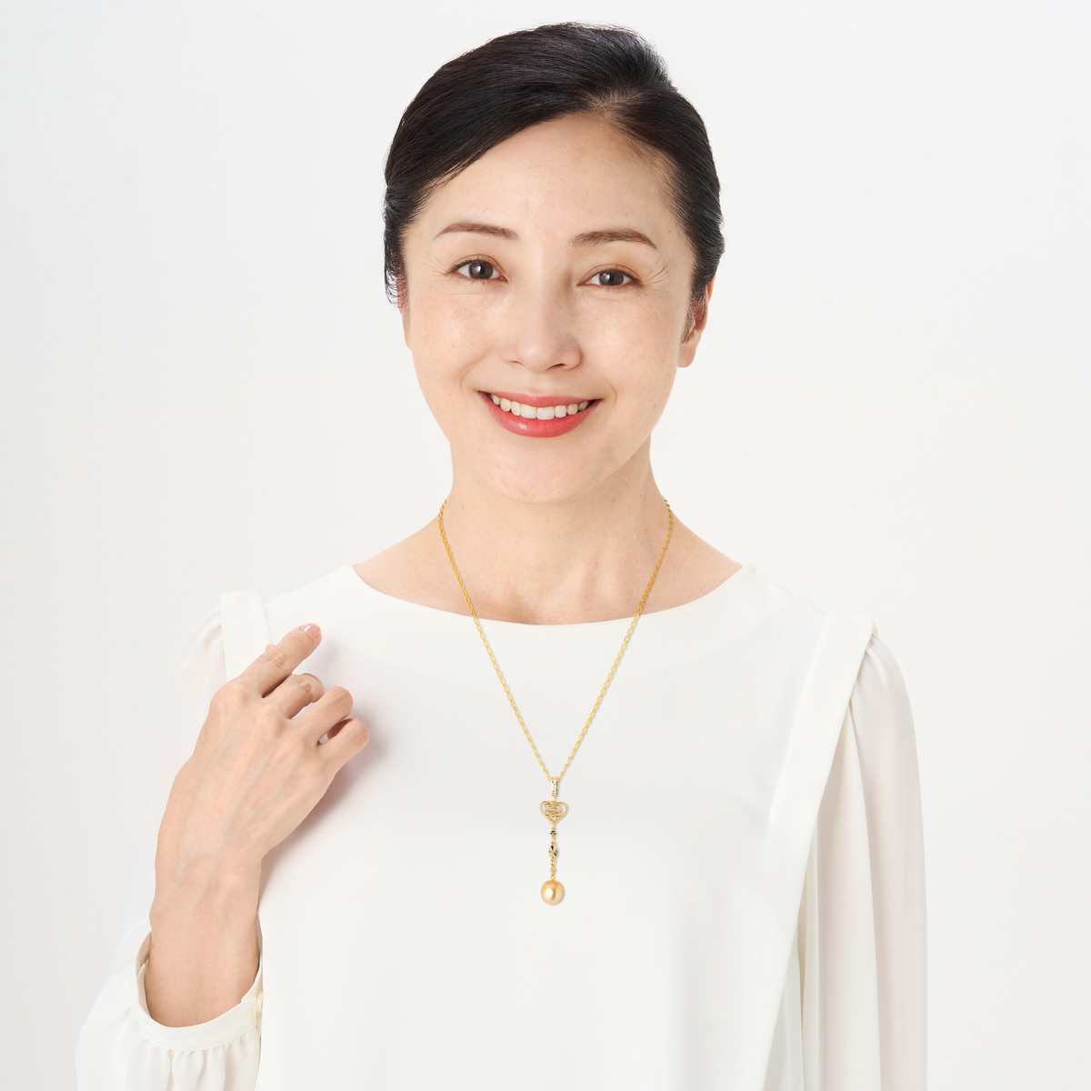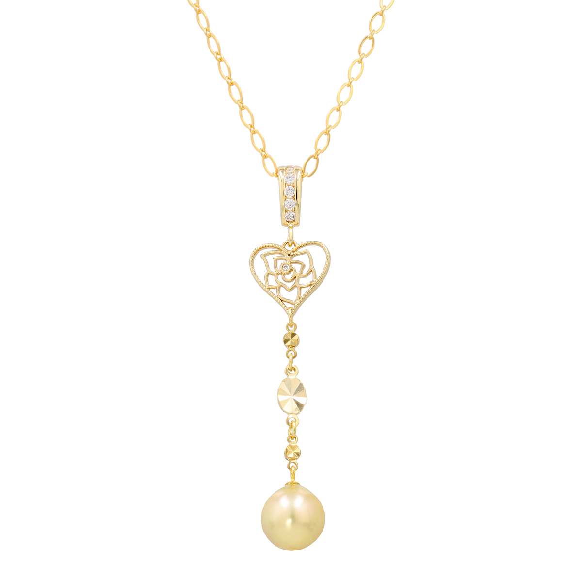 南洋ゴールデンパールの黄金色と艶やかな光沢が際立つ、ネックレスハートペンダント。ハートモチーフが優しいアクセントとなり、胸元に華やぎと気品を添えます。甘さを抑えた洗練されたバランスで、大人の装いにふさわしい一品に仕上げました