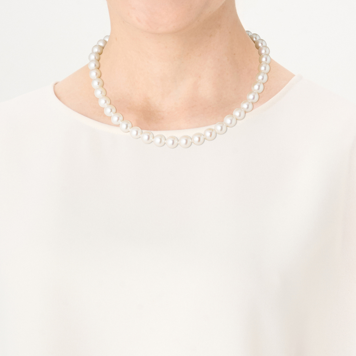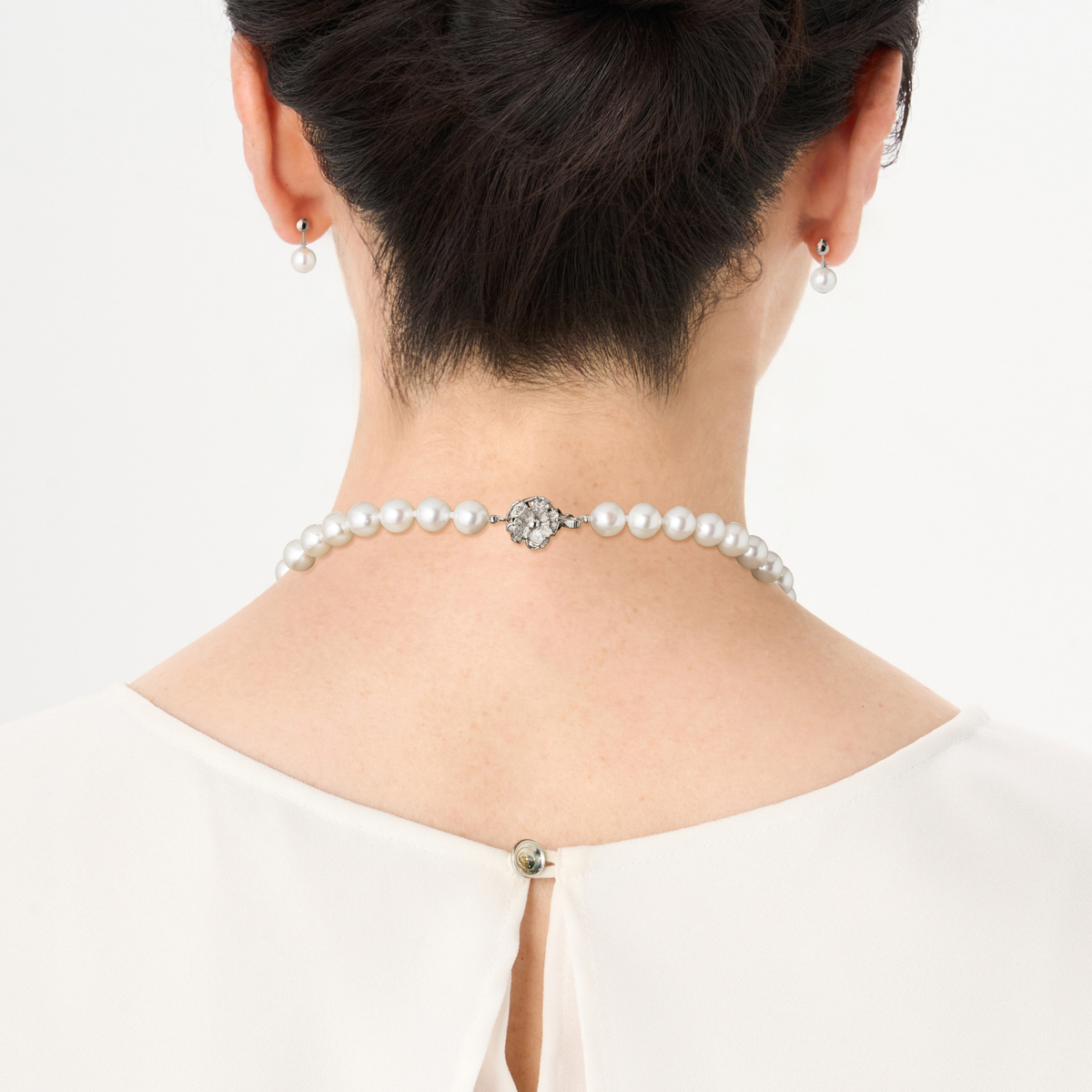 9.0mmUPと大粒のアコヤ真珠をあしらったネックレス&イヤリングまたはピアスのセット。アコヤ真珠は母貝があまり大きくないため、9.0mmUPのサイズはほぼ最大級です