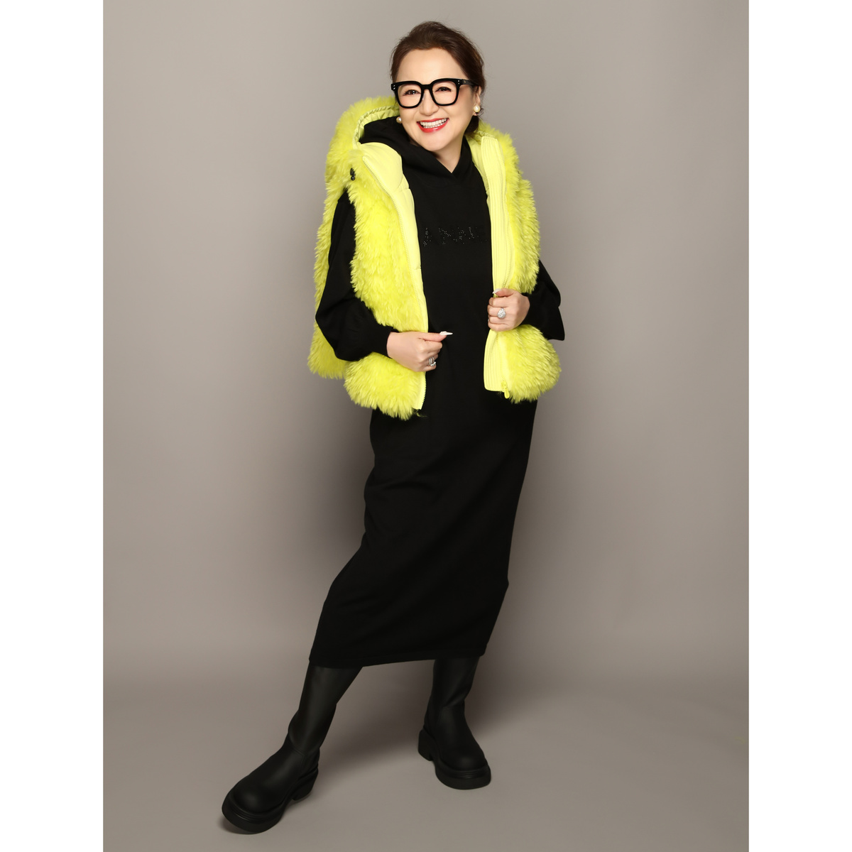 Instagramで彩子さん試着を見てイエローに 一目惚れしていました。 今季は既にベスト二枚購入していたのですが これは特別なお気に入り一枚だと 0時発売開始を待って即購入しました。 一瞬マホマホの着用ベージュも気になったのですが何せベストばかりと我慢w レモンイエローが 寒さに光る元気ビタミンカラー着用で乗り切ります。