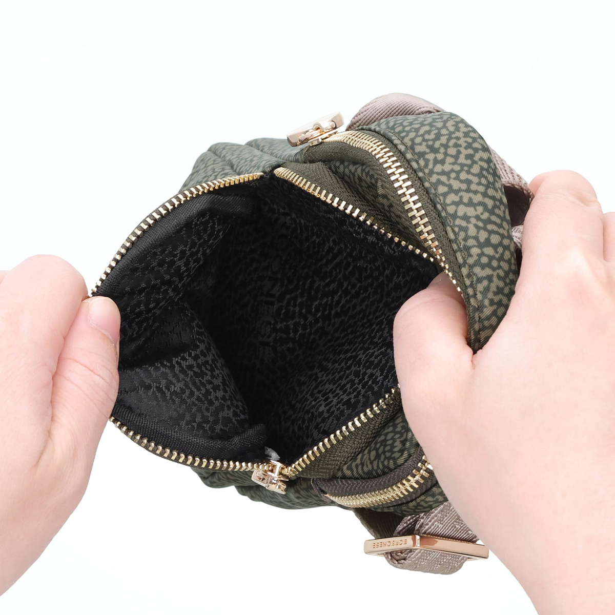 ショルダーベルトは約32cm〜67cmまで調整可能。お出かけや旅行のセカンドバッグとしても活躍し、必要なものをスマートに持ち運べます。ファスナー付きポケットも備えているので、パスポートを入れる際にも便利にお使いいただけます