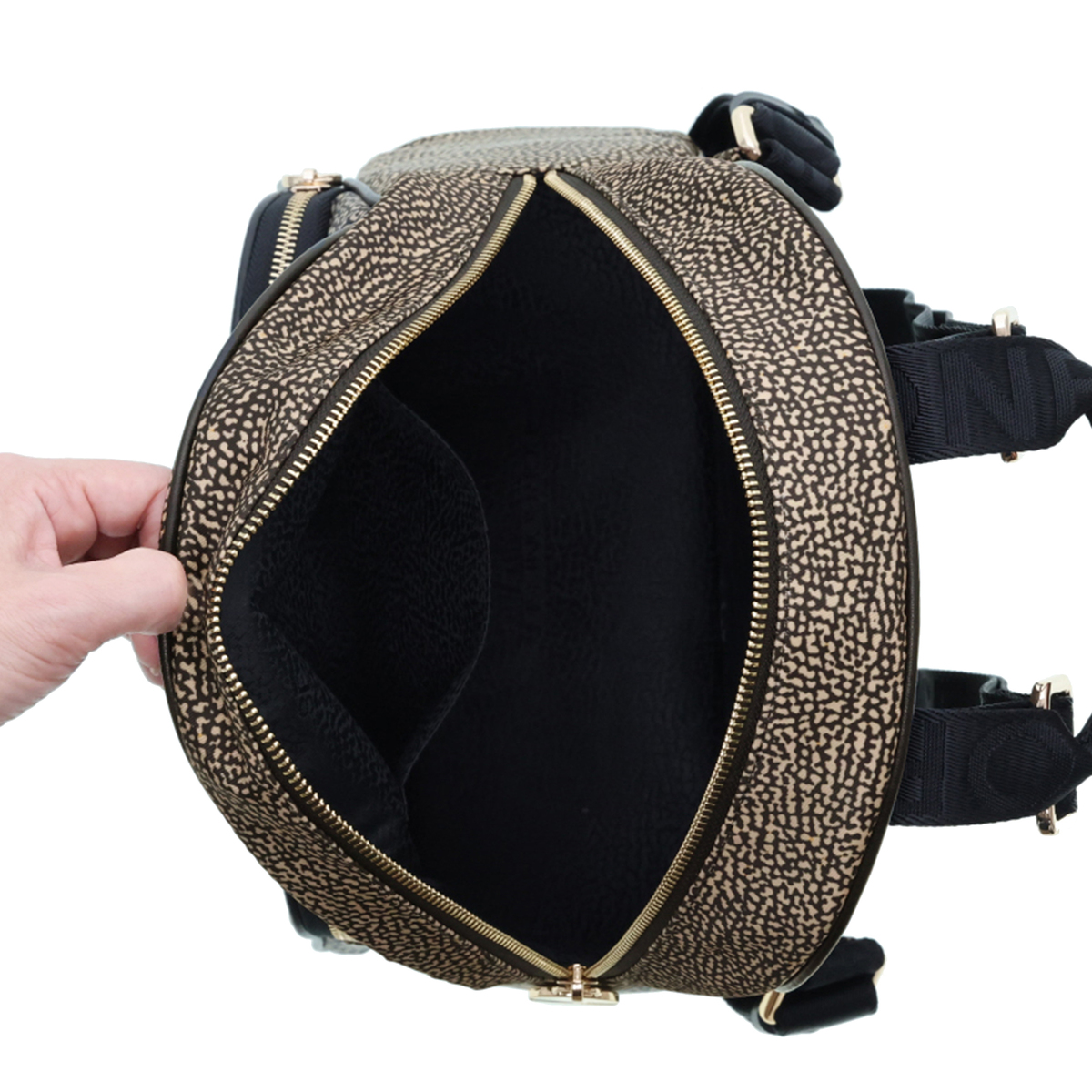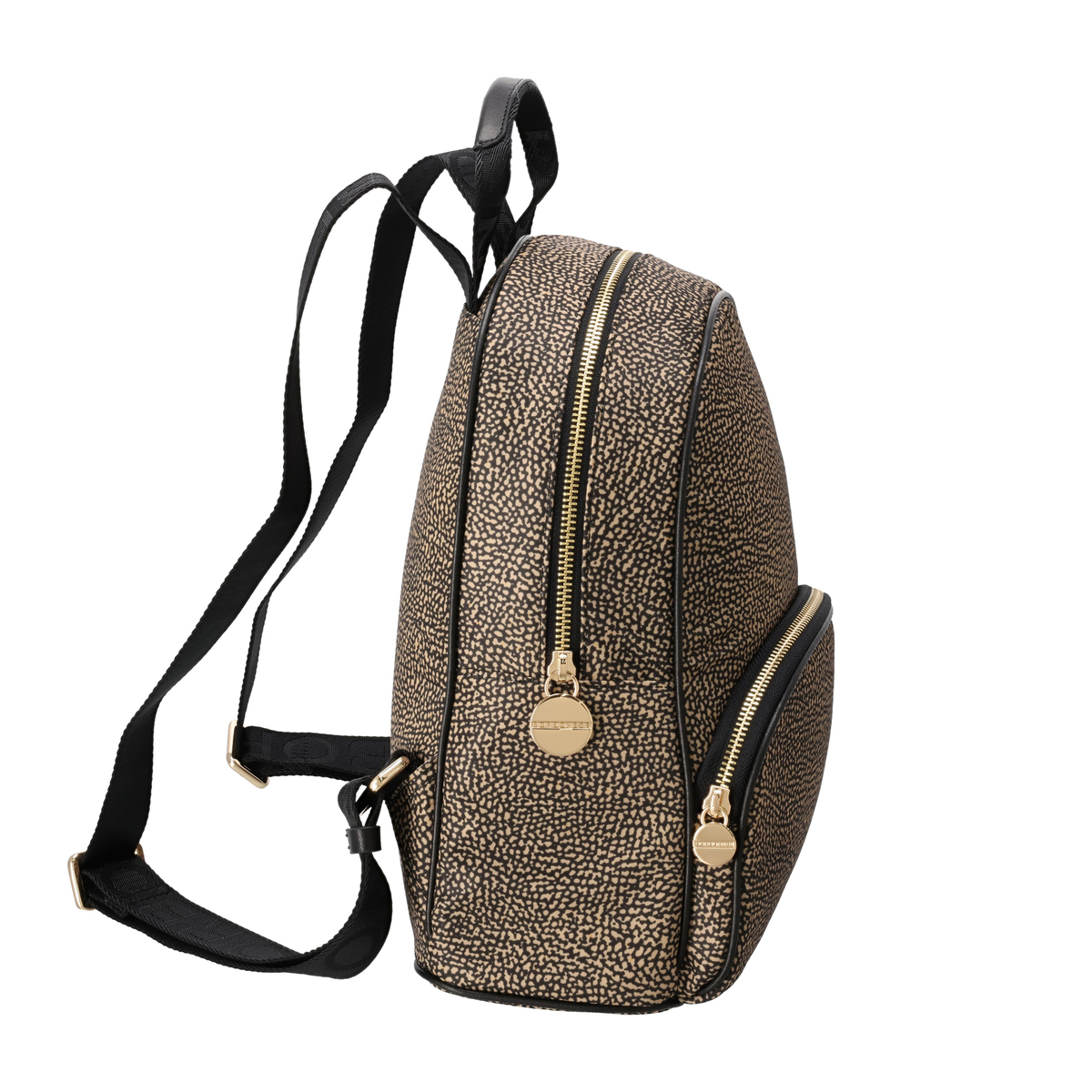 ポケットを豊富に備えたバックパック。見た目はコンパクトながら、A4ノートや500mlのペットボトル、折り畳み傘、メガネケース、化粧ポーチ、2段のお弁当箱などが収納可能です。外側・内側ともに使いやすいポケットが揃い、荷物の整理がしやすい仕様です