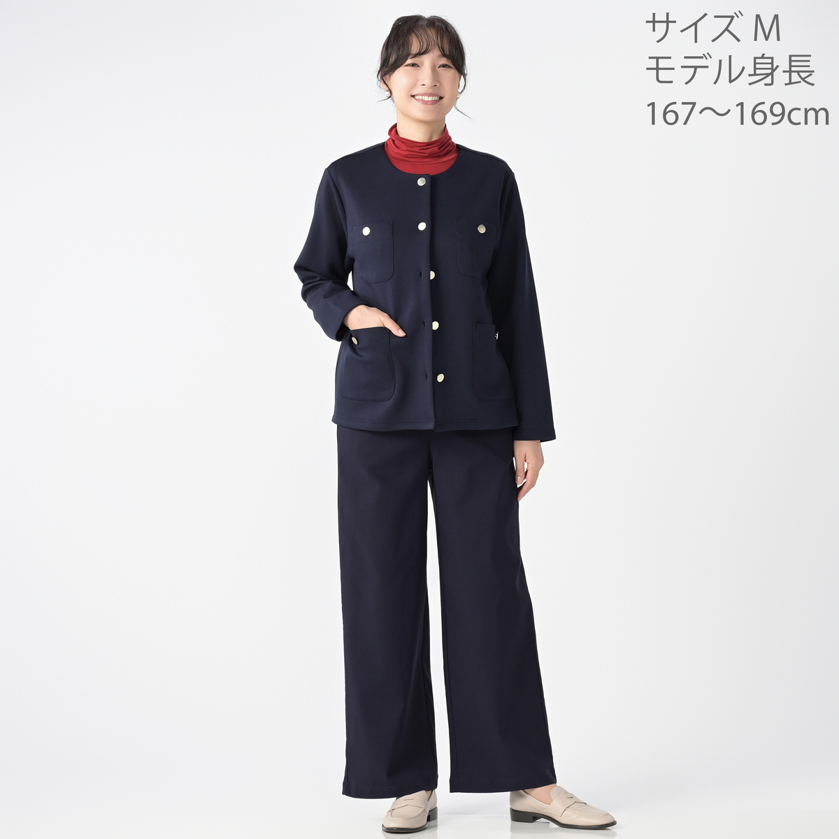 [商品寸法(ヌード)cm] サイズ バスト 着丈 肩幅 S : 102(72〜80) 62 40 M : 106(79〜87) 62 41 L : 111(86〜94) 62 42 LL : 116(93〜101) 64 44 3L : 122(100〜108) 64 45 4L : 128(107〜115) 66 47 サイズ 袖丈 S : 54 M : 55 L : 55 LL : 56 3L : 56 4L : 57 [素材] ポリエステル82%、レーヨン14%、ポリウレタン4% [お手入れ] 洗濯機洗い可 [注意事項] ※商品寸法の誤差は多少発生します。ご了承下さい ※洗濯の際は裏返しにし、洗濯ネットを使用して下さい ※洗濯後はすぐに脱水し、形を整えて干して下さい。長時間水につけたままにしないで下さい ※直射日光や蛍光灯の影響で変色することがありますのでご了承下さい ※濃色製品は着用中の摩擦により色移りすることがあります。また、雨や汗等で濡れた状態で着用すると色移りすることがあります。その際はお早めに洗濯をして下さい ※素材の特性上、着用や洗濯・クリーニング時の摩擦により毛羽立ち、毛玉が発生します。その際はお早めに毛玉取り器等で手入れをして下さい ※洗濯やクリーニングにより徐々に色あせします。また、色落ちすることがありますので、他の物と分けて洗って下さい ※デリケートな素材を使用していますので、爪やアクセサリーなどの引っ掛かりによりキズがつきやすくなっております。縫目や生地を強く引っ張らないよう注意して下さい ※無蛍光洗剤使用 ※あて布使用 【中国製】