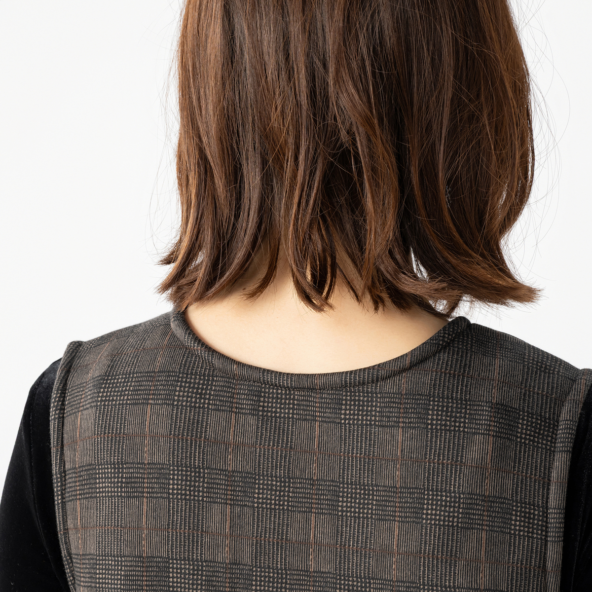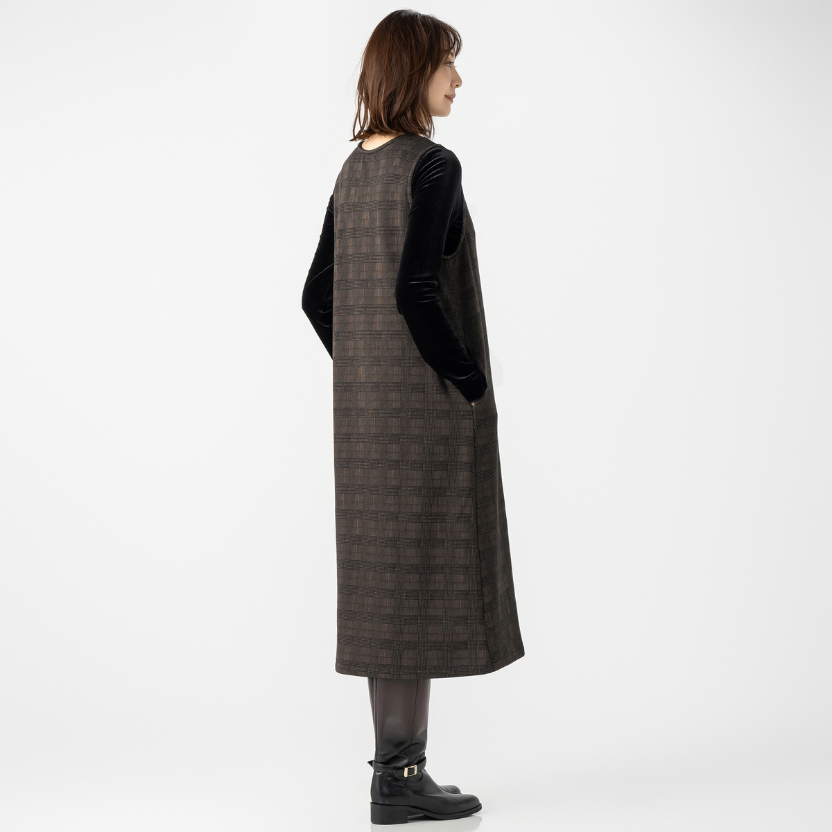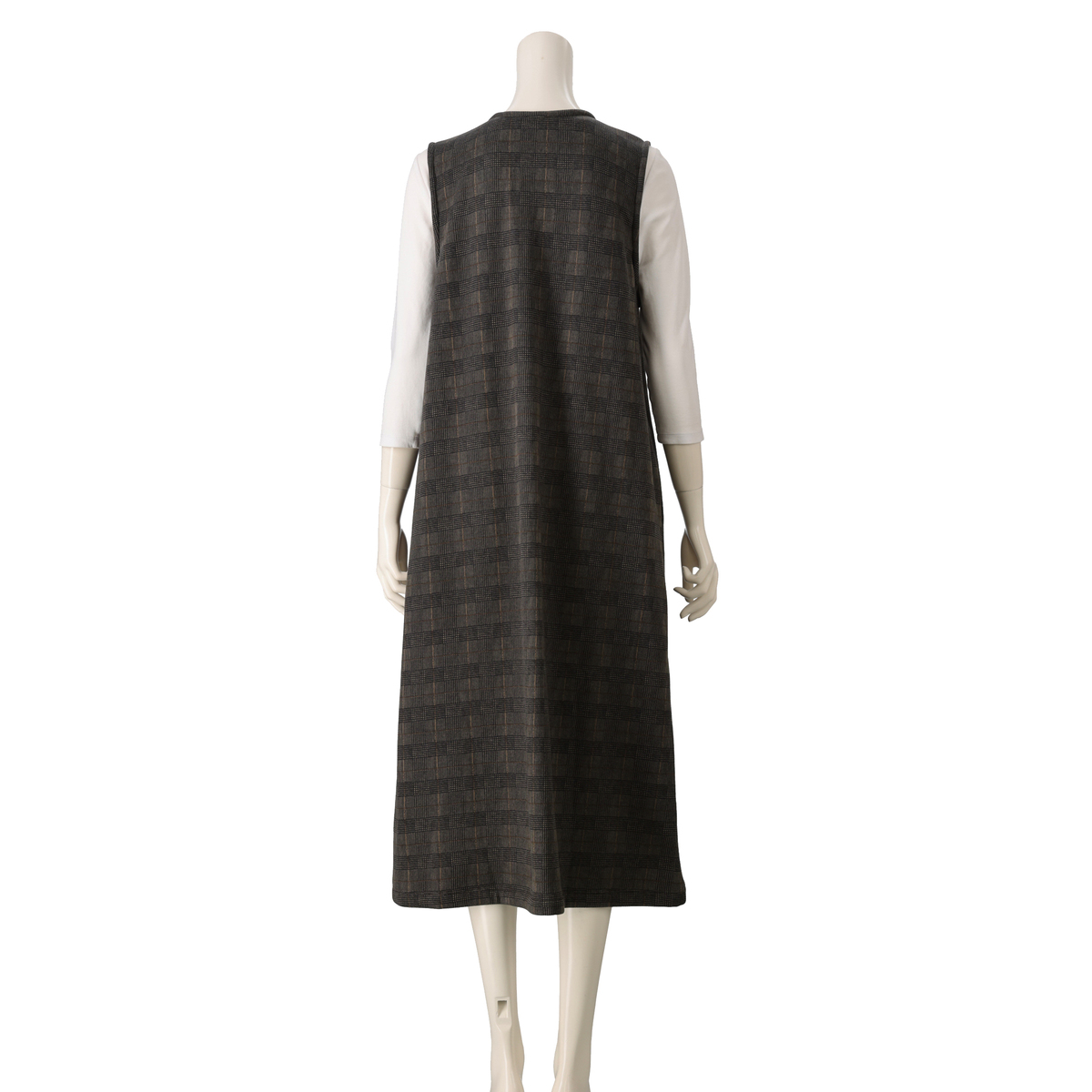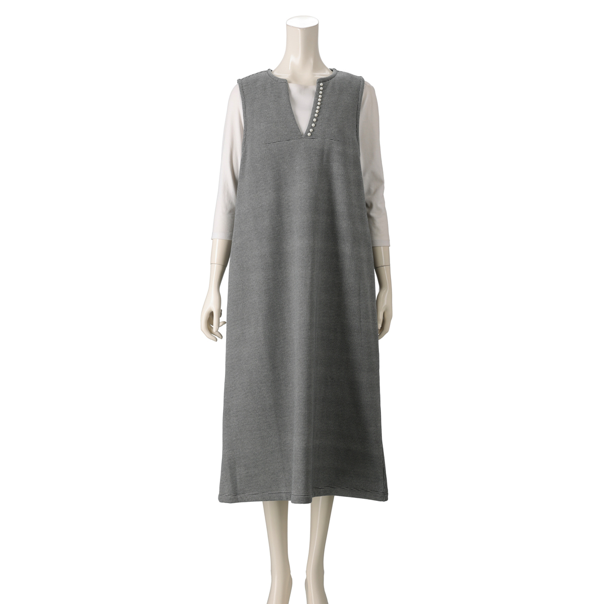 エニワイズ加工したジャンスカ。エニワイズ加工は、繊維中に油脂分が含まれているので、しっとりなめらかな肌ざわりです。肌寒い季節にぴったりの裏シャギー素材を使用しており、しっかりとした厚みがありながら伸縮性もよく、長時間着用しても窮屈さを感じにくい快適な着心地です