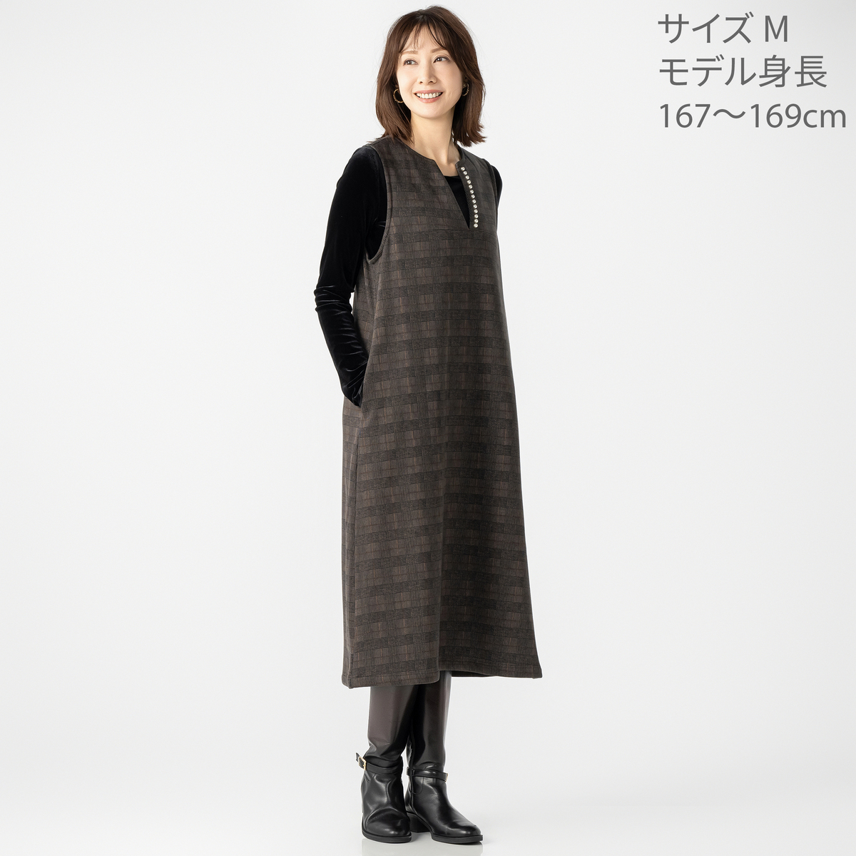 [商品寸法(ヌード)cm] サイズ バスト 着丈 S: 94(72〜80) 110.5 M: 98(79〜87) 110.5 L: 102(86〜94) 110.5 LL: 108(93〜101) 112.5 3L: 114(100〜108) 112.5 4L: 120(107〜115) 114.5 サイズ 肩幅 S: 34 M: 35 L: 36 LL: 37.5 3L: 39 4L: 40.5 [素材] ポリエステル70%、綿25%、ポリウレタン5% [お手入れ] 洗濯機洗い可 [注意事項] ※商品寸法の誤差は多少発生します。ご了承下さい ※洗濯の際は裏返しにし、洗濯ネットを使用して下さい ※洗濯後はすぐに脱水し、形を整えて干して下さい。長時間水につけたままにしないで下さい ※直射日光や蛍光灯の影響で変色することがありますのでご了承下さい ※濃色製品は着用中の摩擦により色移りすることがあります。また、雨や汗等で濡れた状態で着用すると色移りすることがあります。その際はお早めに洗濯をして下さい ※素材の特性上、着用や洗濯・クリーニング時の摩擦により毛羽立ち、毛玉が発生します。その際はお早めに毛玉取り器等で手入れをして下さい ※洗濯やクリーニングにより徐々に色あせします。また、色落ちすることがありますので、他の物と分けて洗って下さい ※デリケートな素材を使用していますので、爪やアクセサリーなどの引っ掛かりによりキズがつきやすくなっております。縫目や生地を強く引っ張らないよう注意して下さい 【中国製】